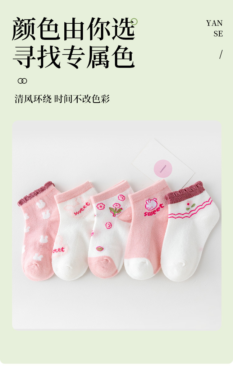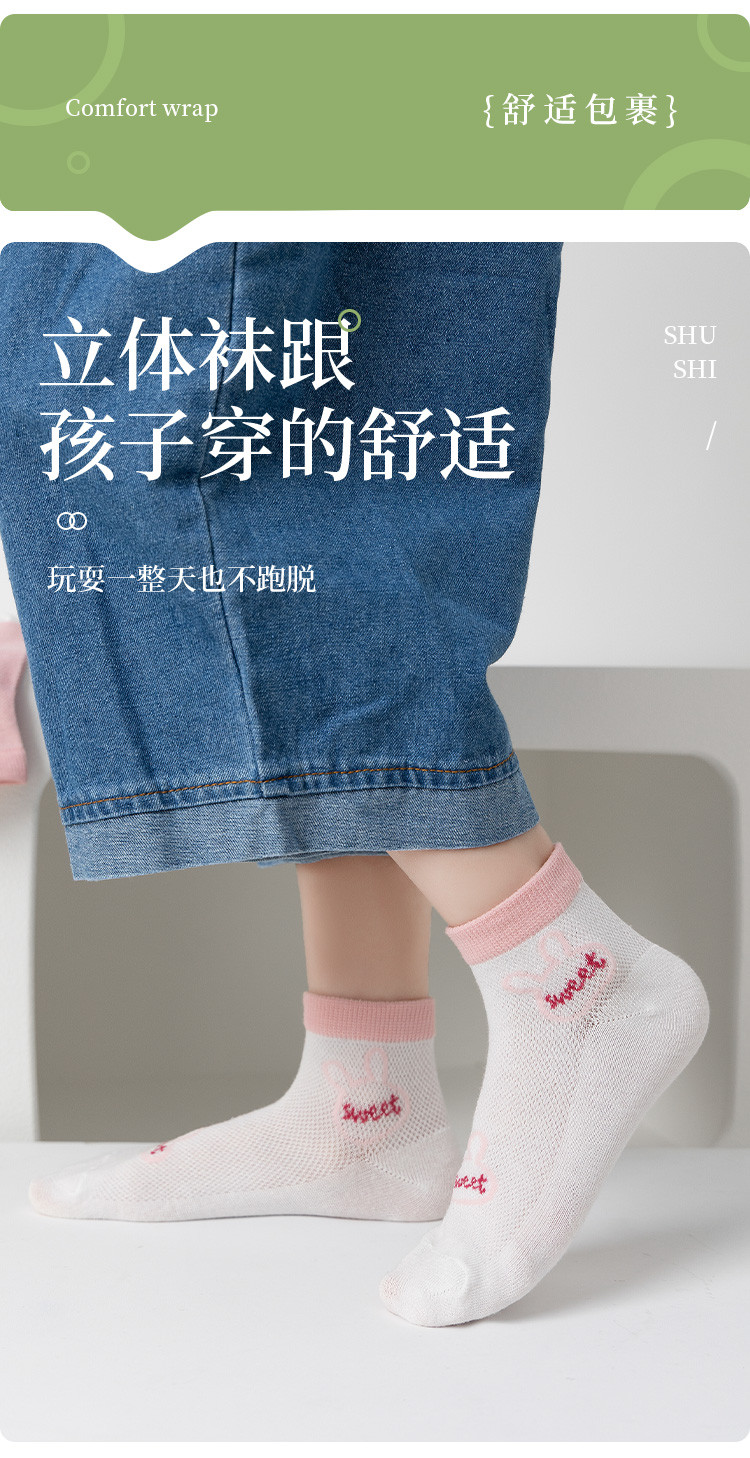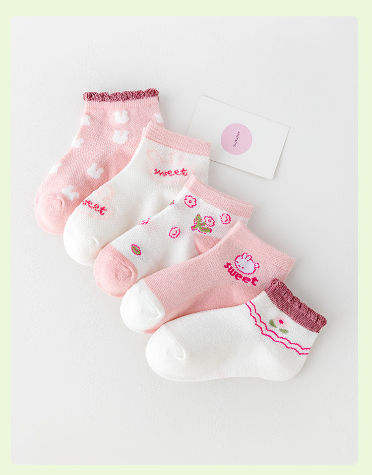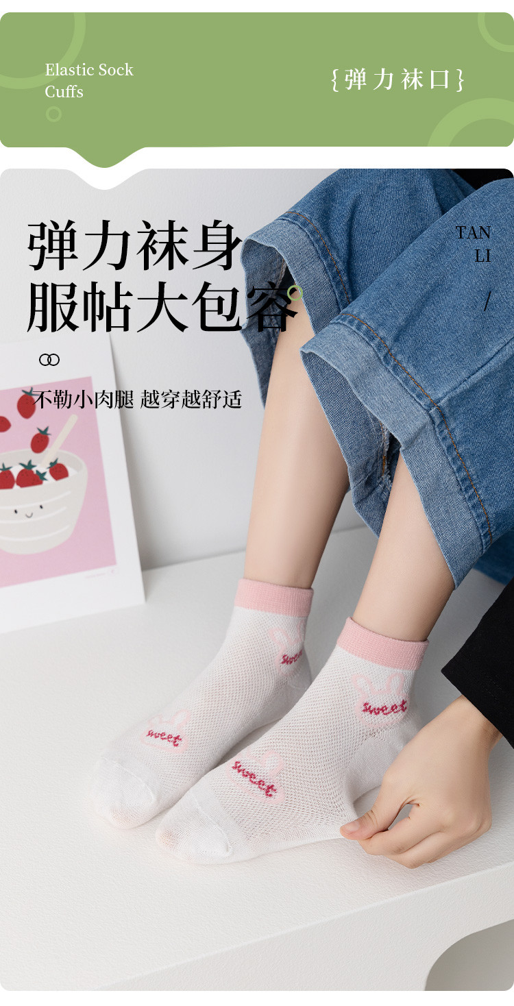商品名称:【精梳棉五双装】可爱儿童袜子春夏款透气网眼宝宝袜女童男童短袜 229195