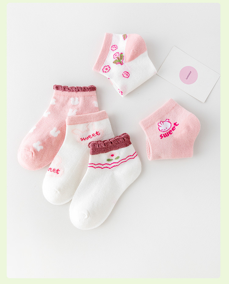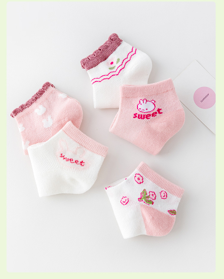 【精梳棉五双装】可爱儿童袜子春夏款透气网眼宝宝袜女童男童短袜 229195