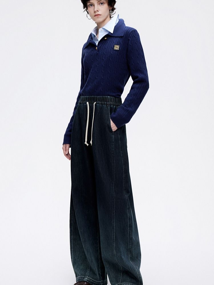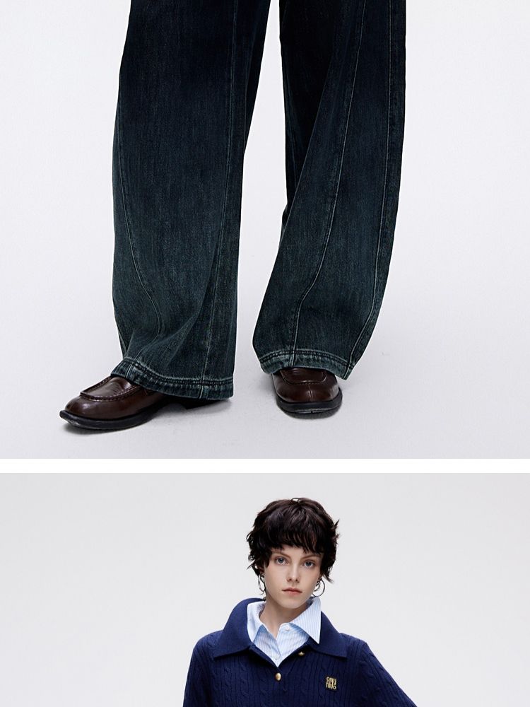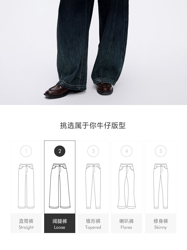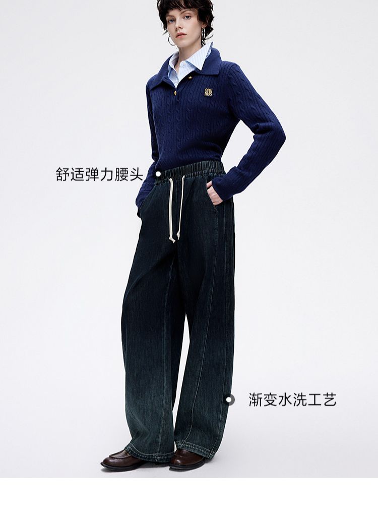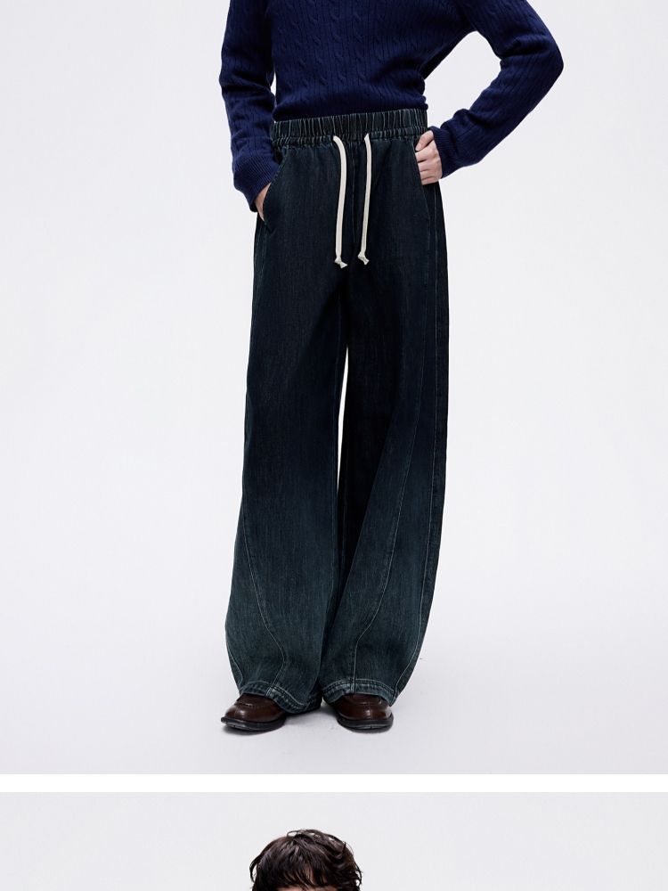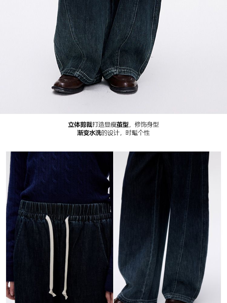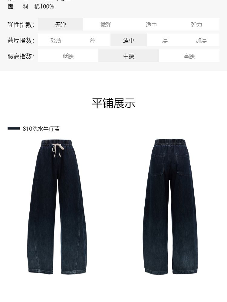 商品名称:【渐变水洗】2025夏季时尚设计舒适弹力腰头阔腿长裤牛仔裤 468954