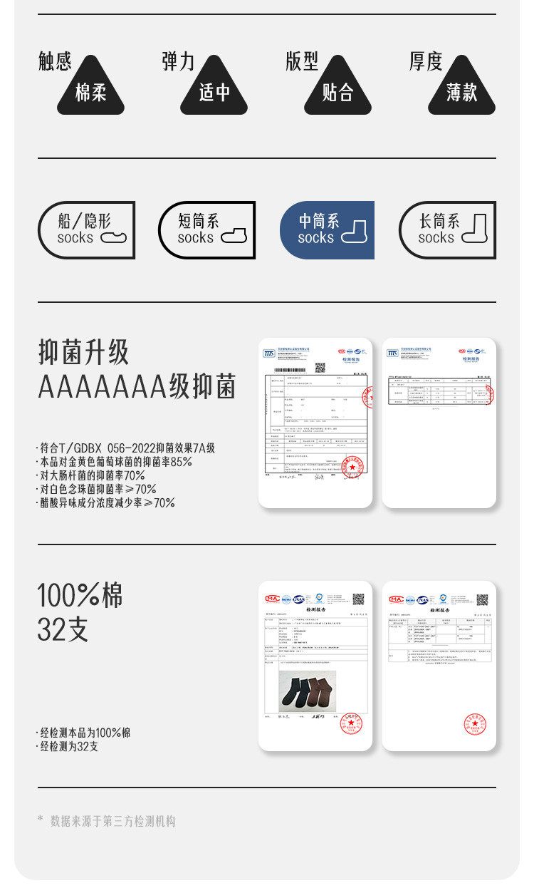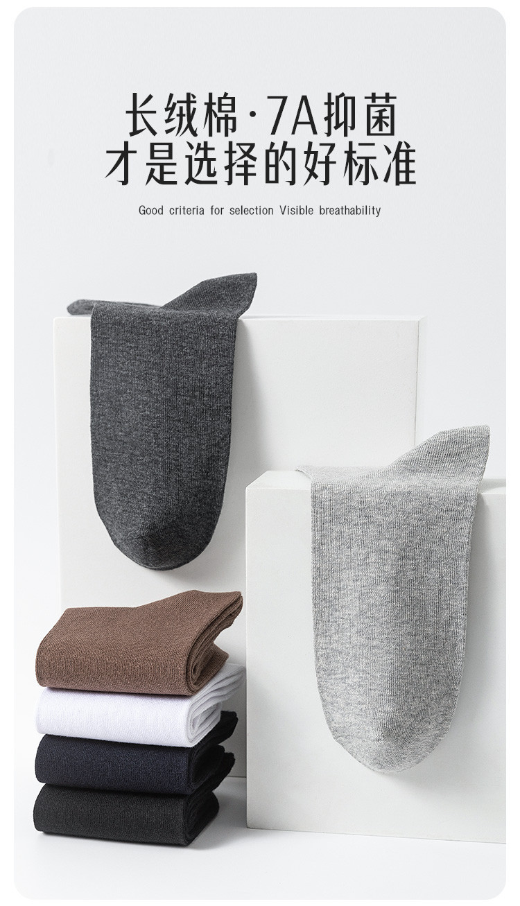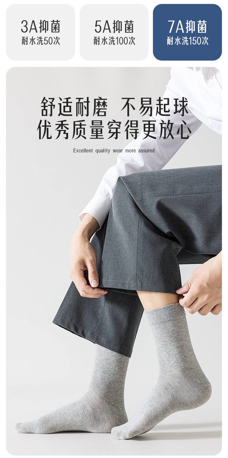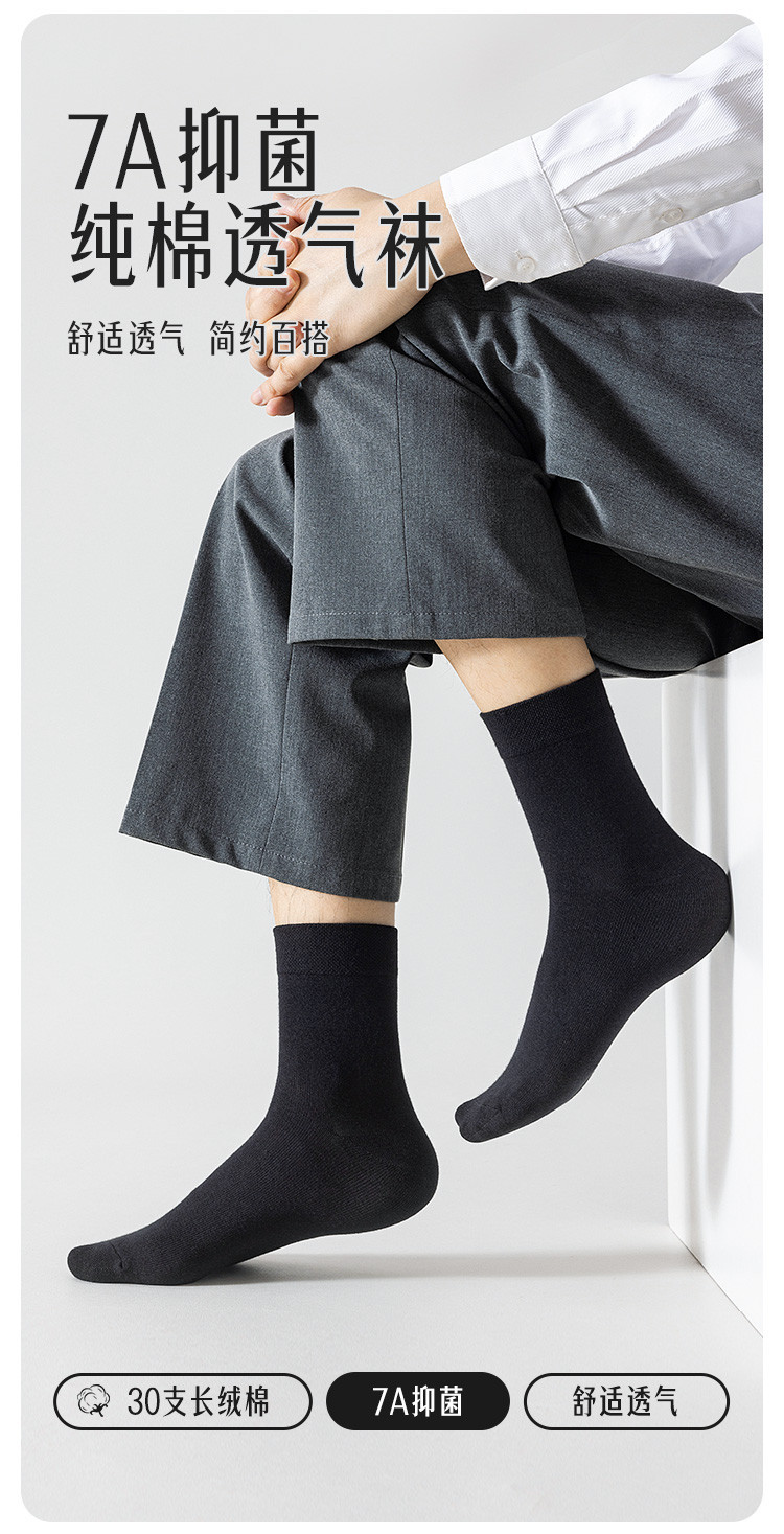 商品名称:【100%棉】7A抑菌男士舒适透气纯棉商务袜子男中筒防臭男袜 802763