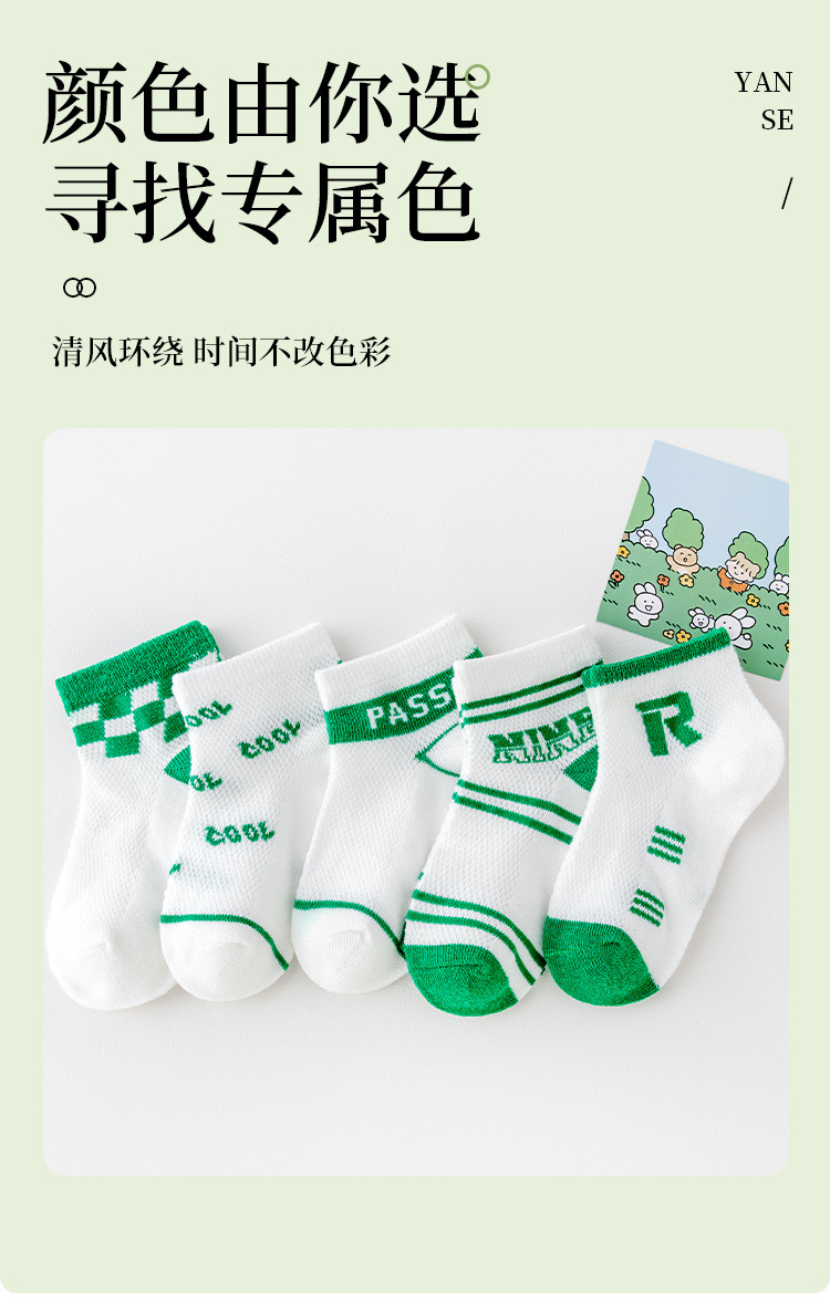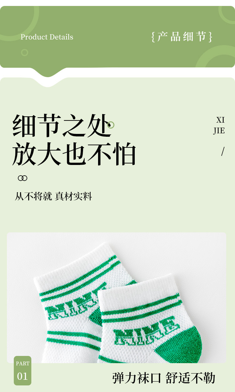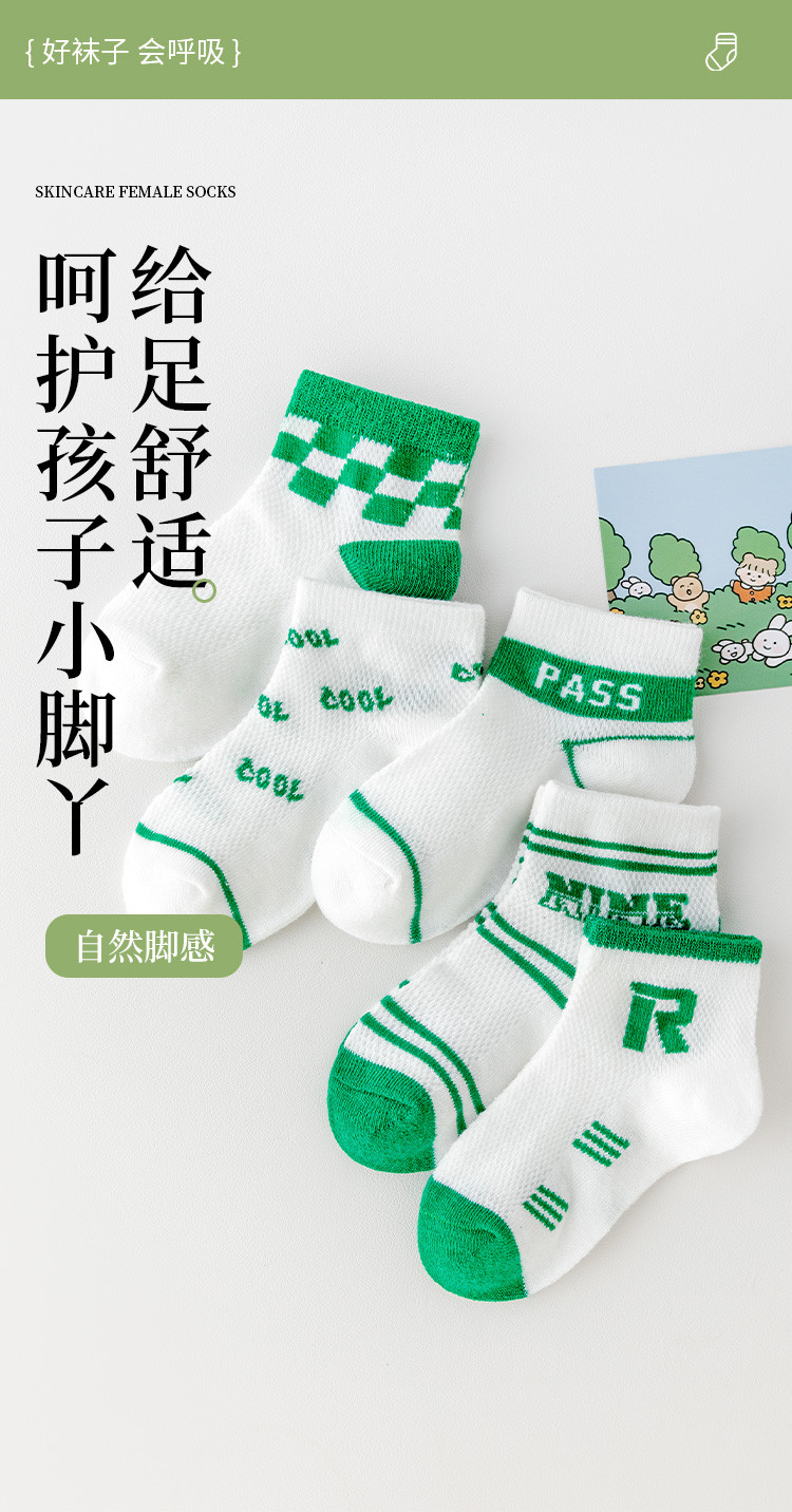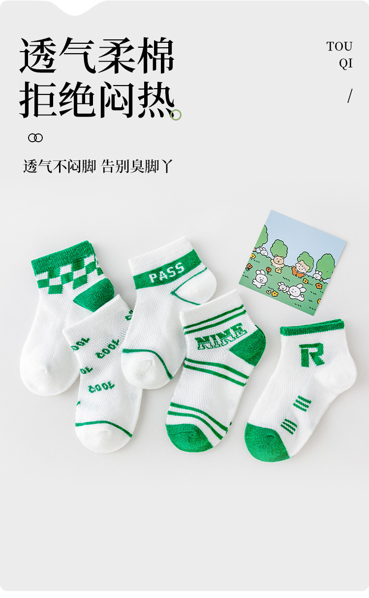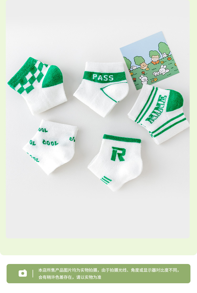 商品名称:【撞色拼接 可爱简约】儿童袜子春夏5双装网眼透气亲肤棉质短袜 225099