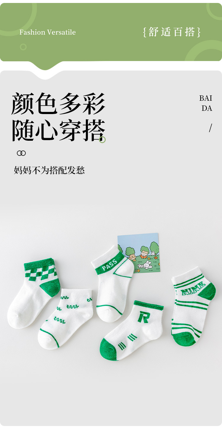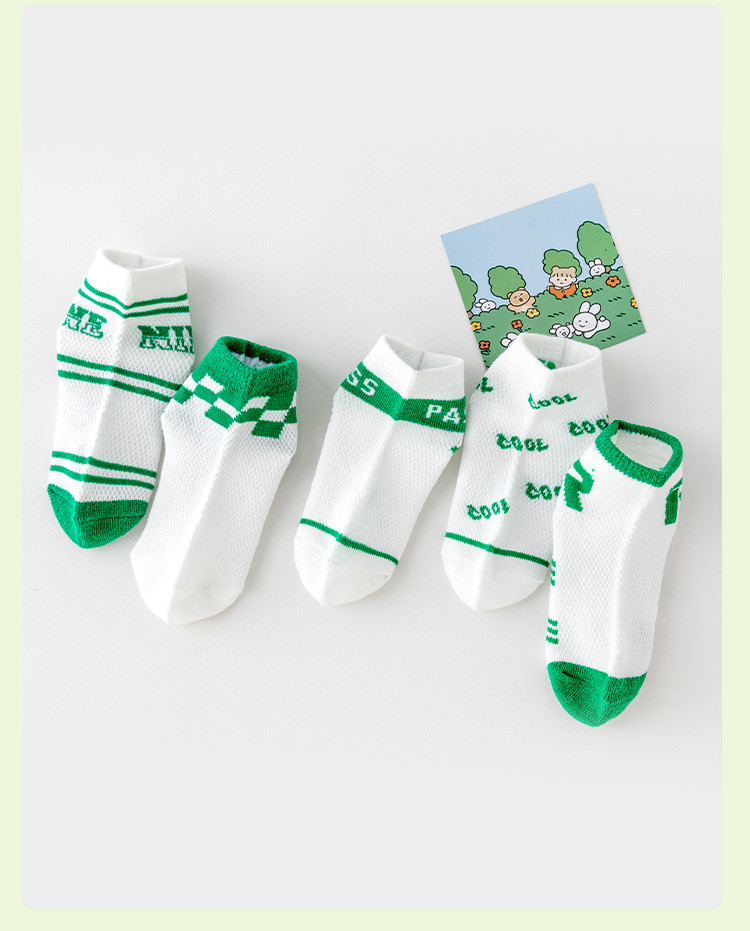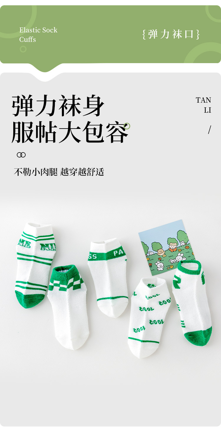 【撞色拼接 可爱简约】儿童袜子春夏5双装网眼透气亲肤棉质短袜 225099