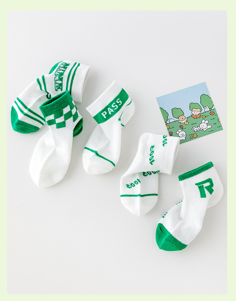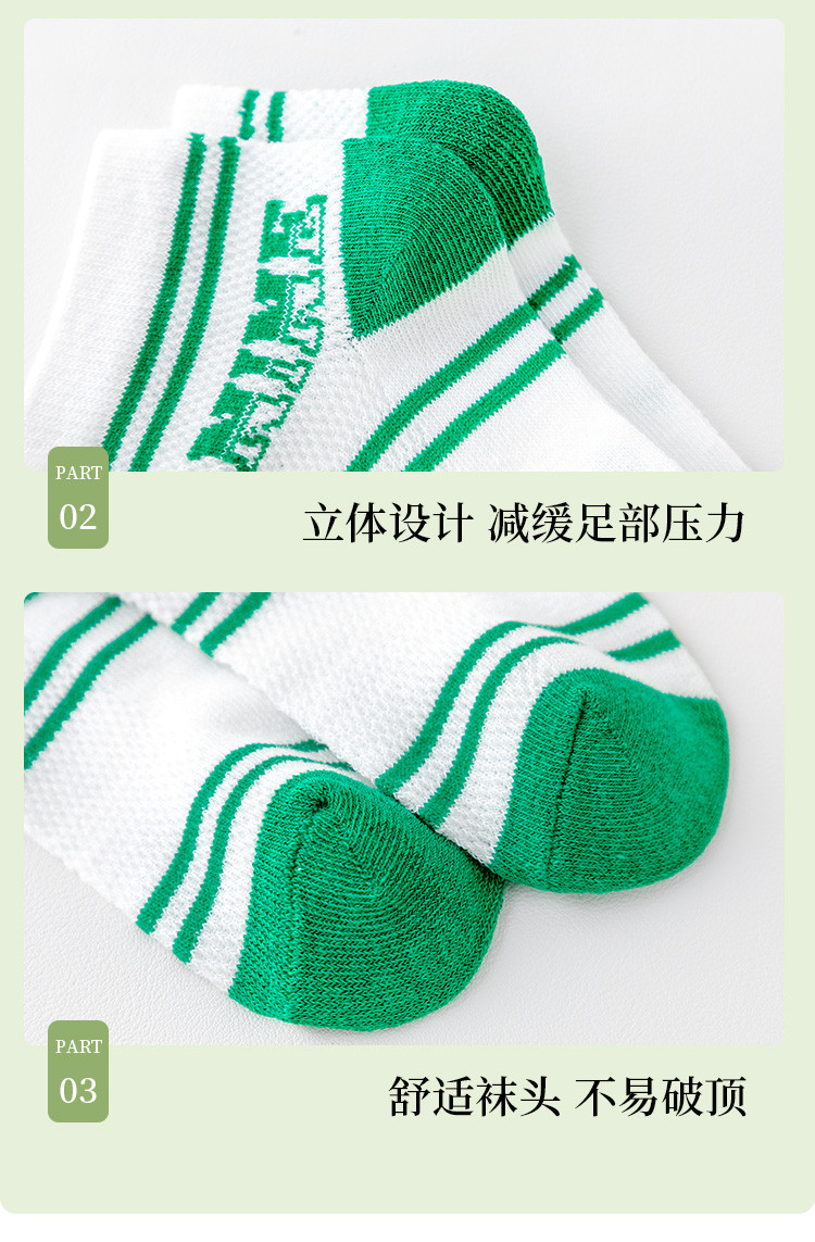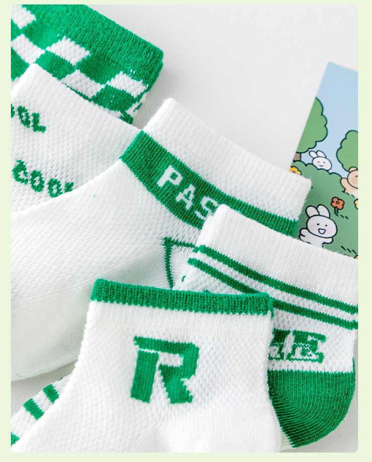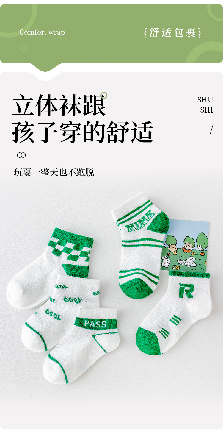 【撞色拼接 可爱简约】儿童袜子春夏5双装网眼透气亲肤棉质短袜 225099