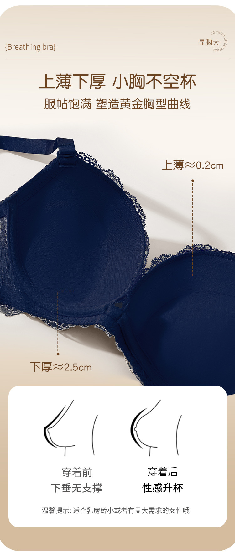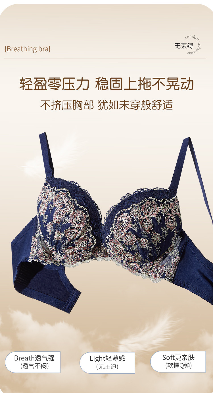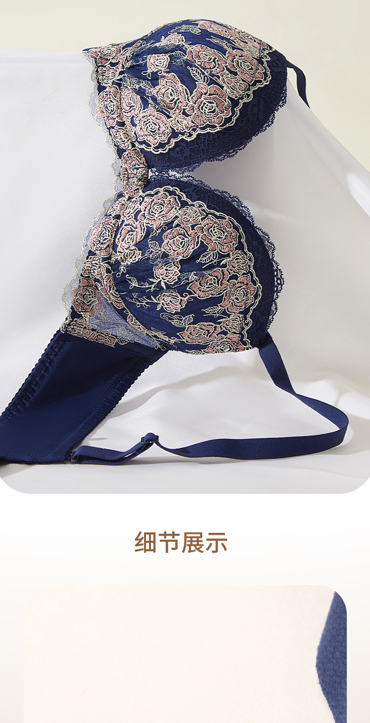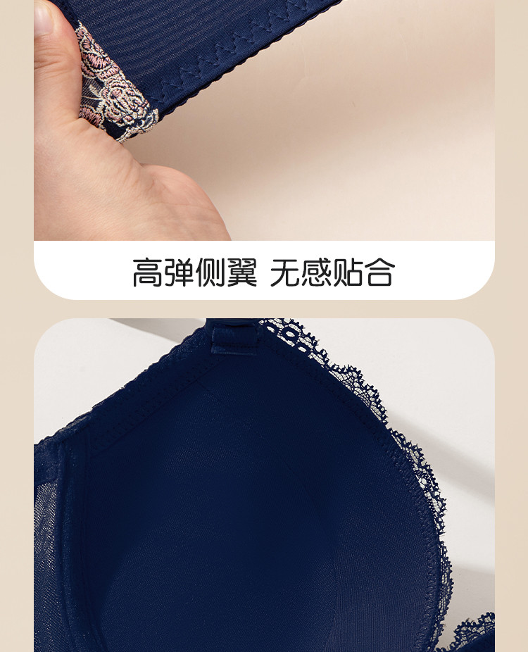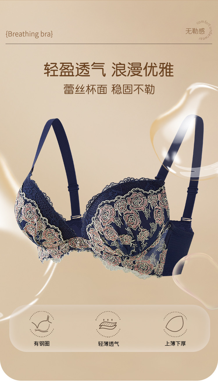 商品名称:性感时尚法式蕾丝深V罩杯聚拢型文胸收副乳舒适上薄下厚内衣女 187147