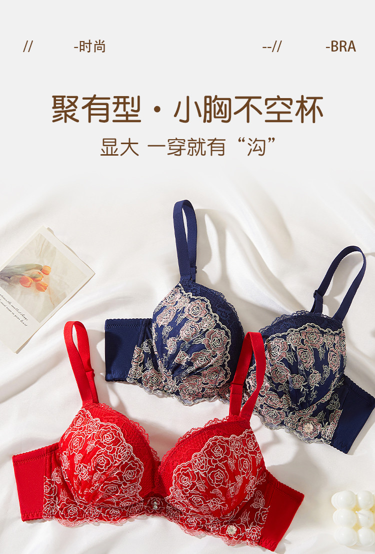 性感时尚法式蕾丝深V罩杯聚拢型文胸收副乳舒适上薄下厚内衣女 187147