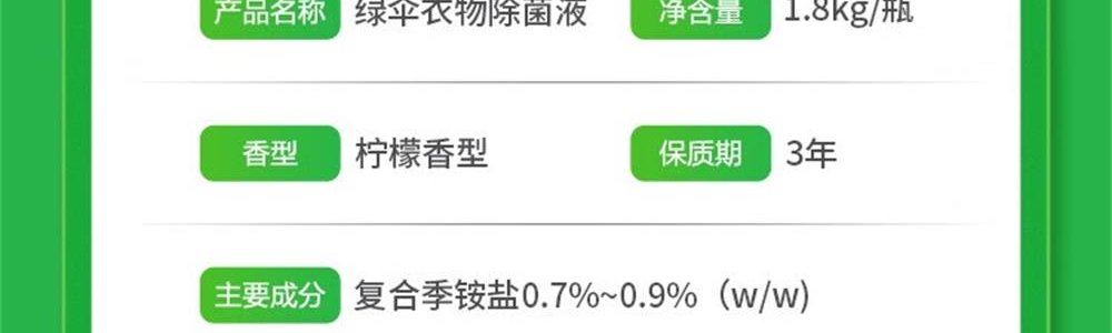 商品名称:绿伞 衣物除菌液 3.6斤/瓶 柠檬香