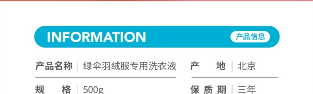 商品名称:绿伞 GMC羽绒服专用洗衣液 500g/瓶