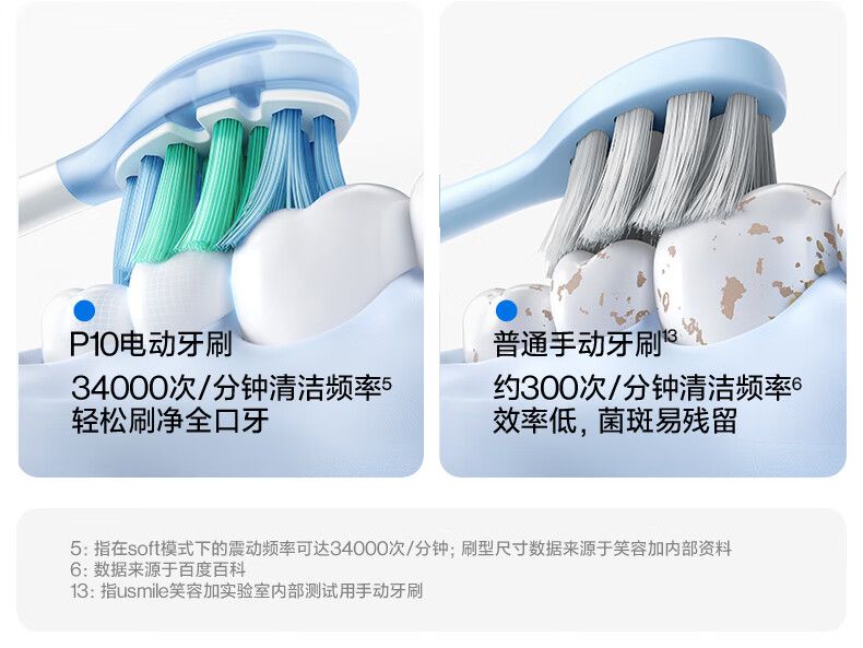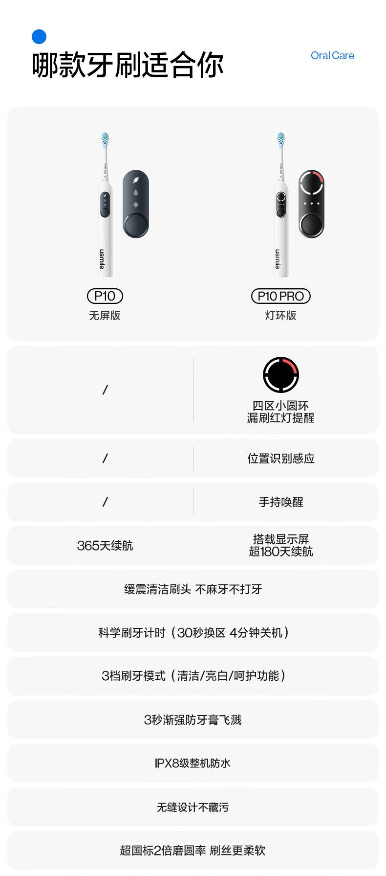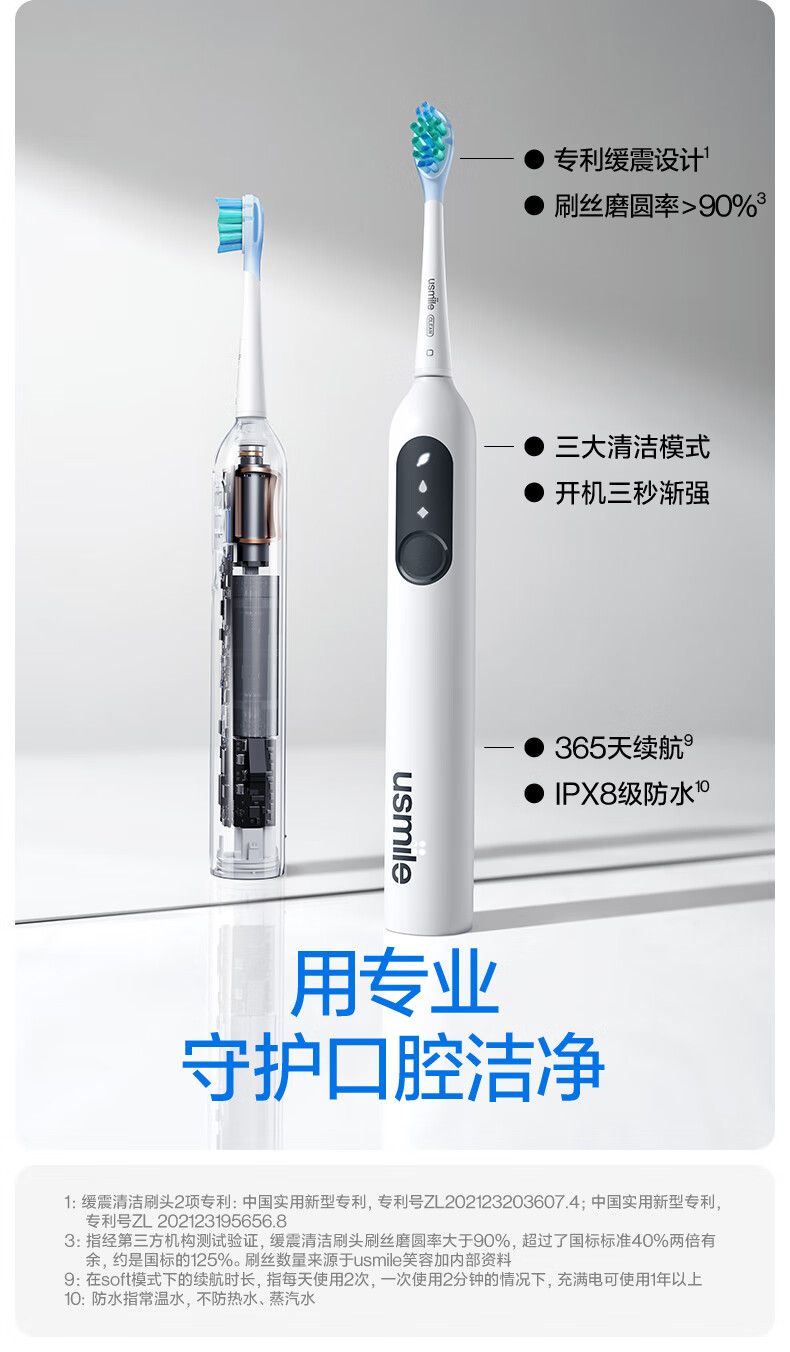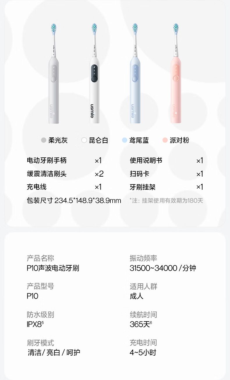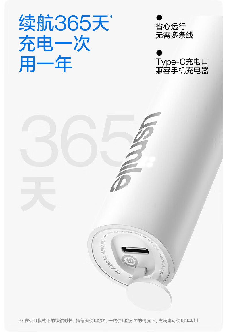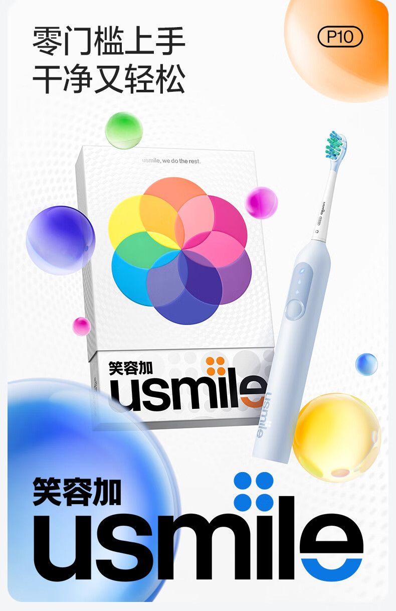 商品名称:usmile笑容加电动牙刷P10 成人情侣版软毛自动男女士通用声波震动充电式牙刷
