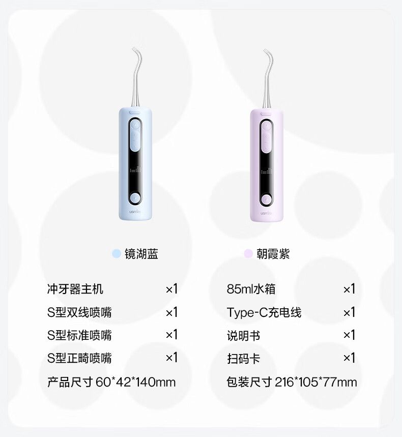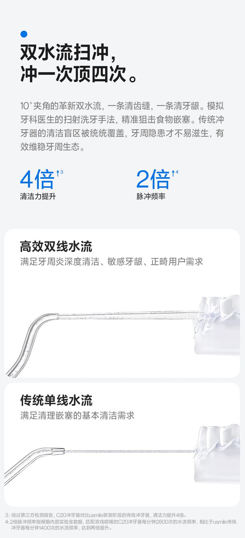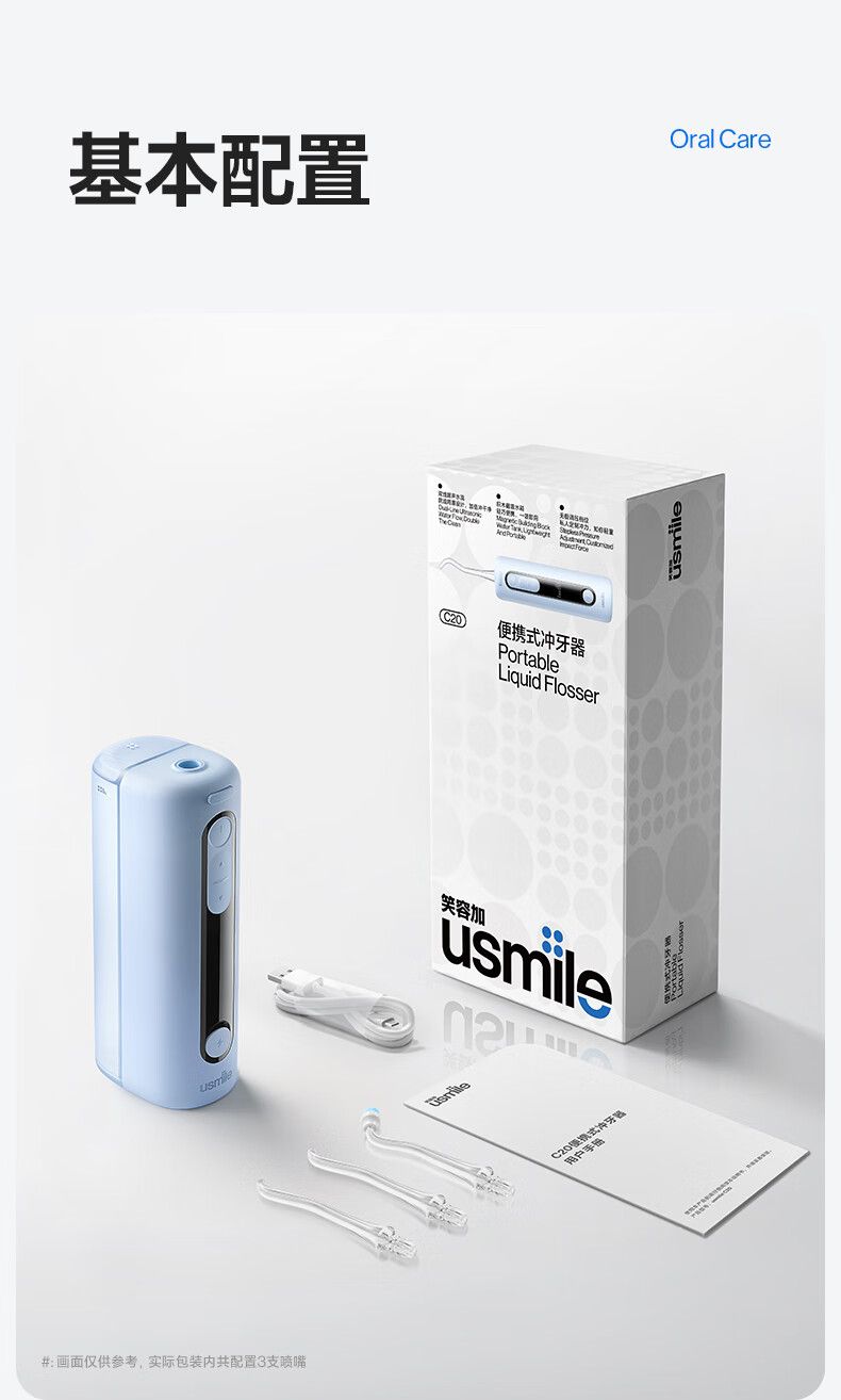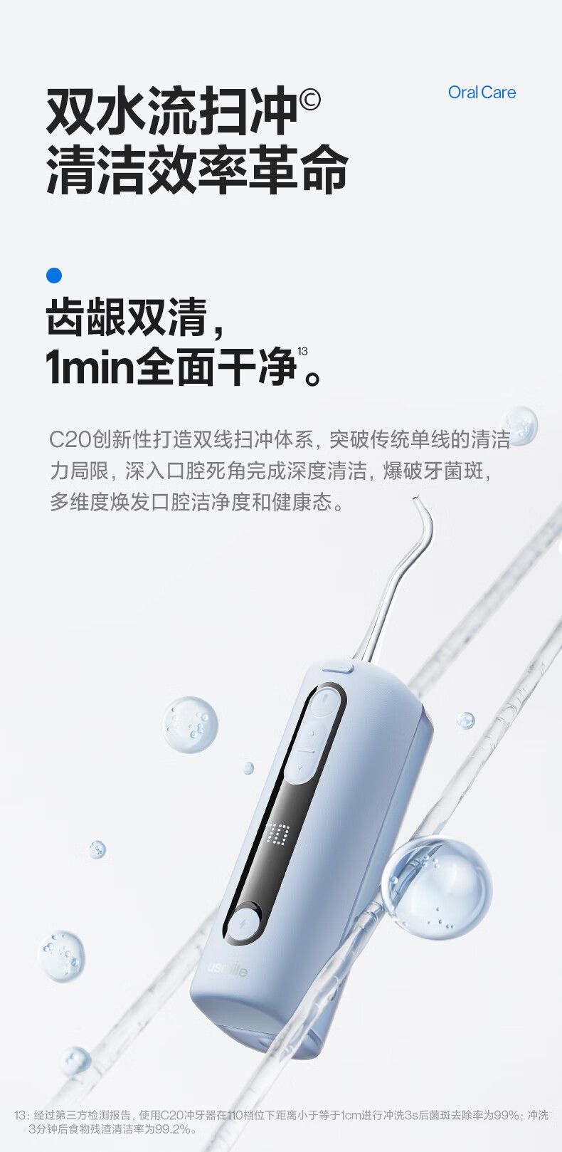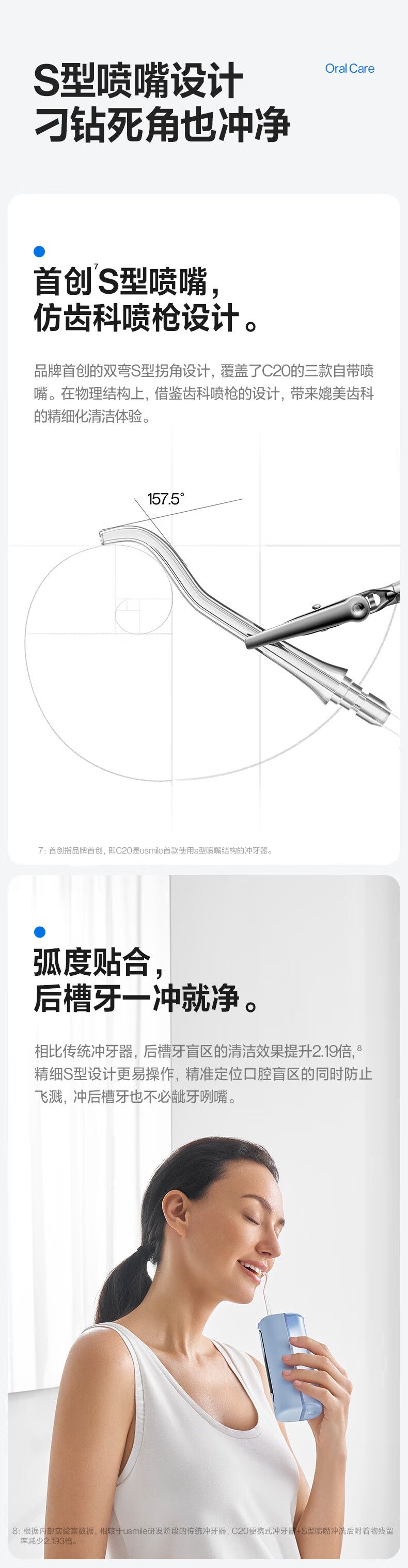 商品名称:usmile笑容加冲牙器C20 双水流 S型喷嘴 口腔牙齿 家用磁吸便携冲牙器