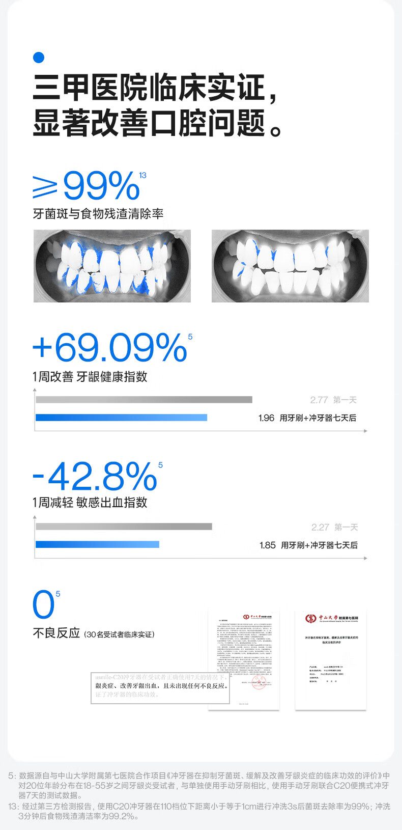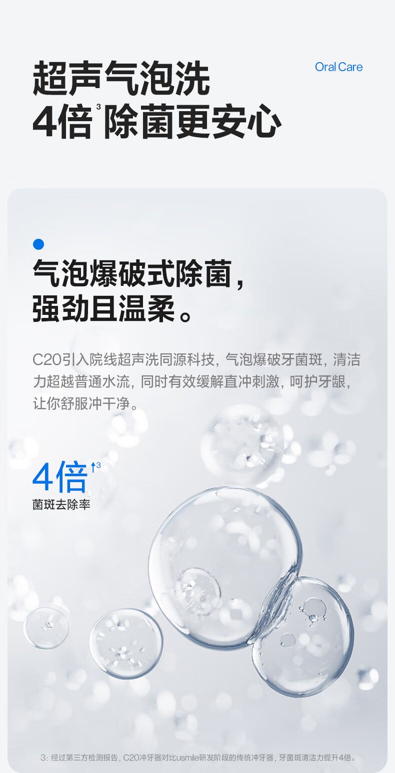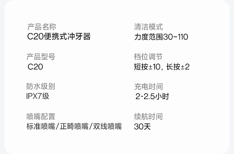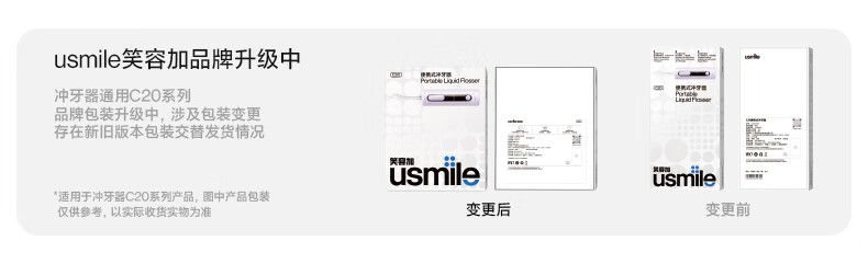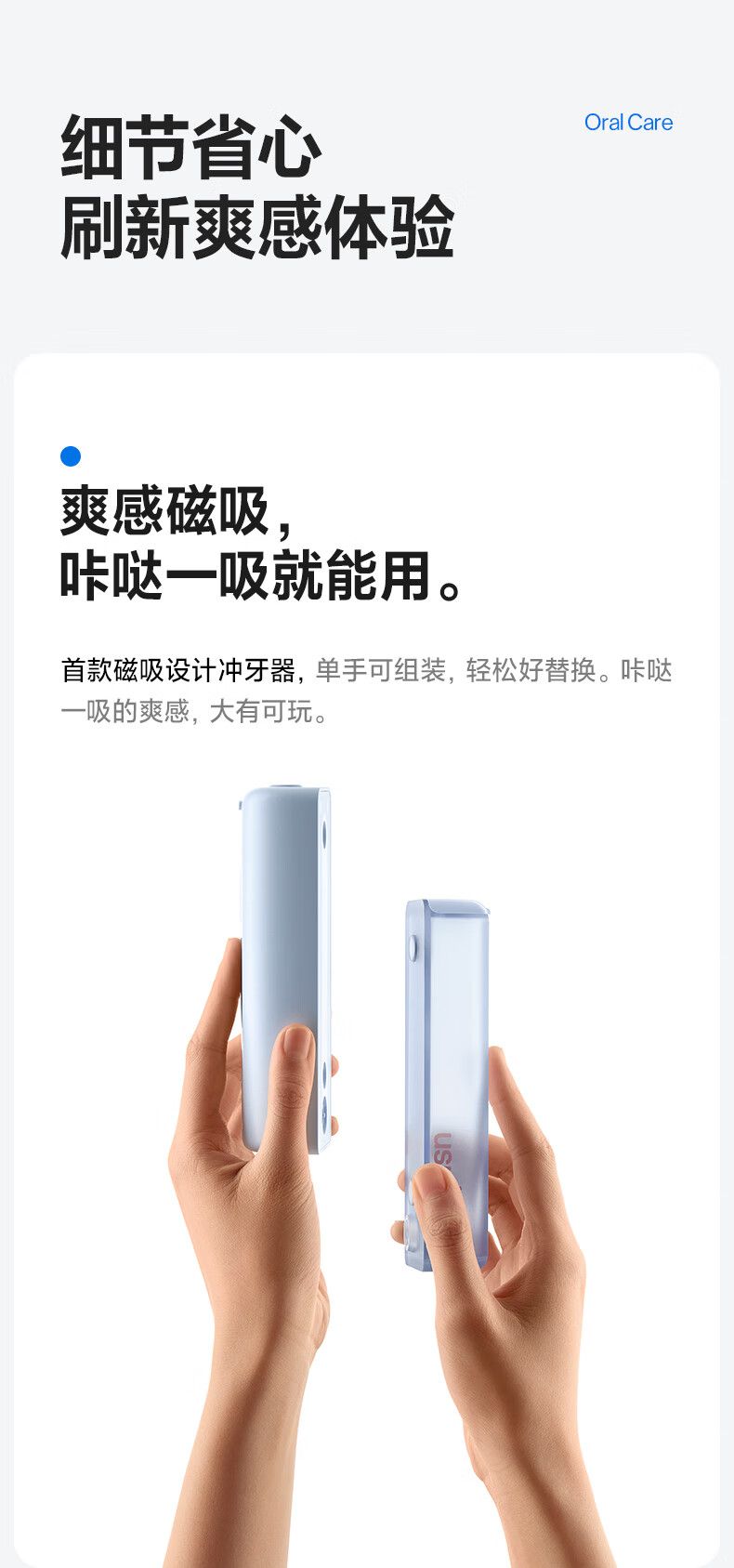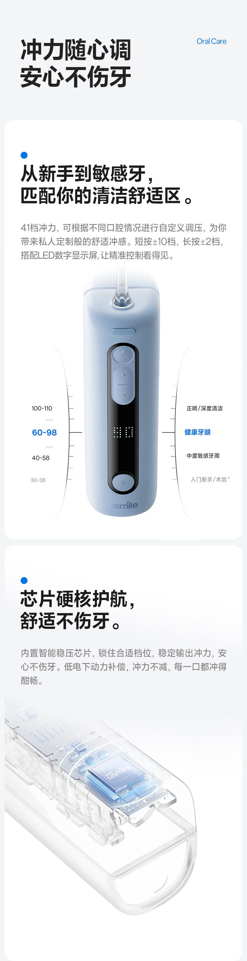 商品名称:usmile笑容加冲牙器C20 双水流 S型喷嘴 口腔牙齿 家用磁吸便携冲牙器
