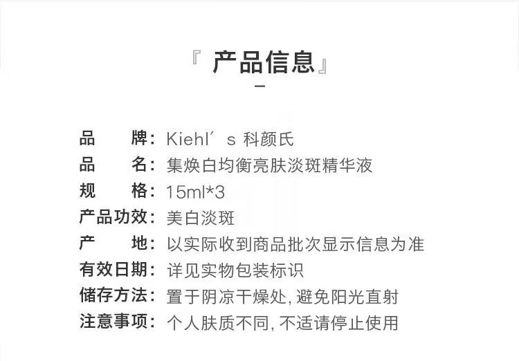 商品名称:Kiehl's/科颜氏 紫罐a面霜50ml+淡斑精华15ml