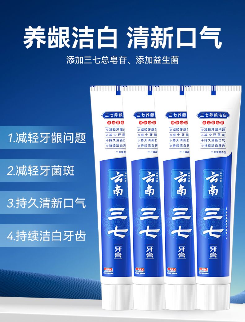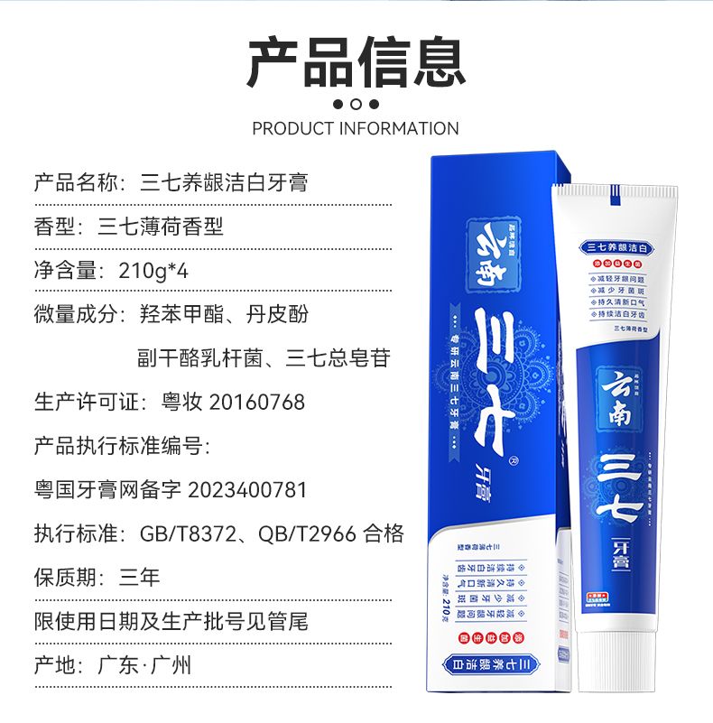 商品名称:云南三七 养龈洁白牙膏210g*4只