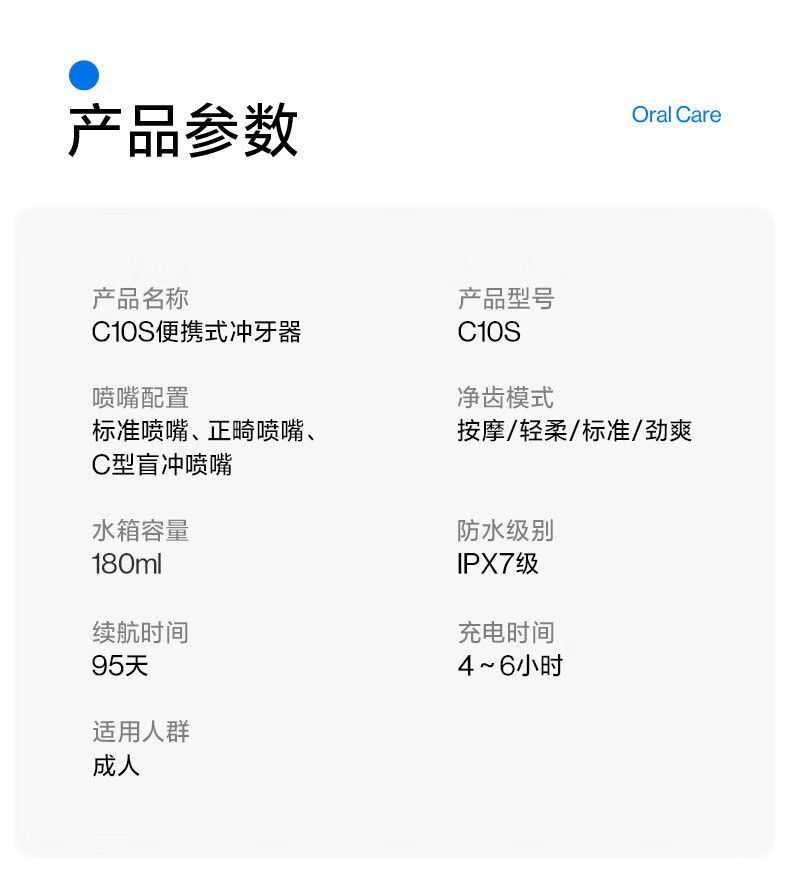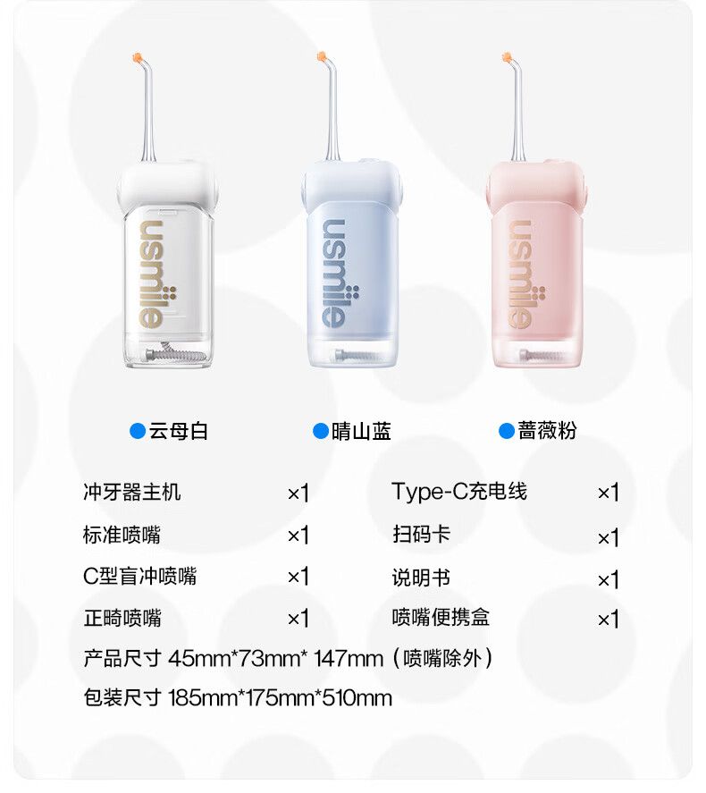 商品名称:usmile笑容加冲牙器C10S 洗牙器水牙线 伸缩便携冲牙器