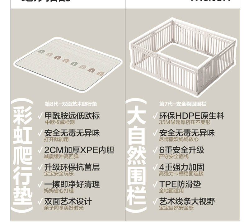 【围栏150*180+2CM厚XPE彩虹垫】桦木色