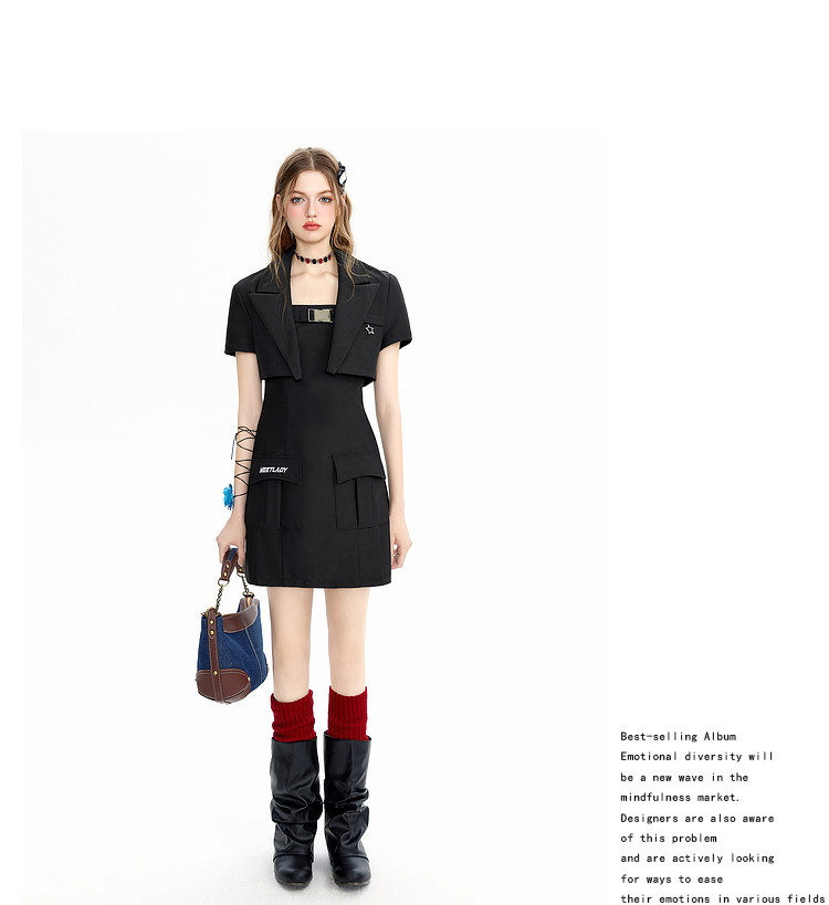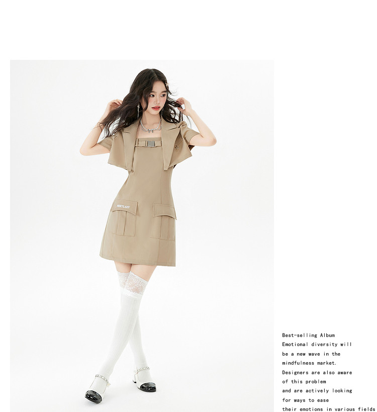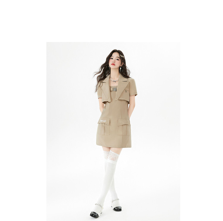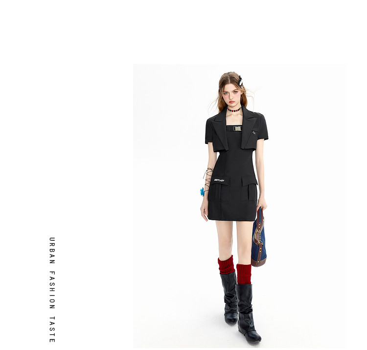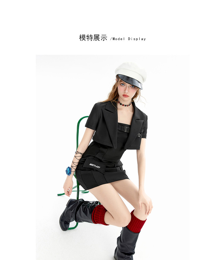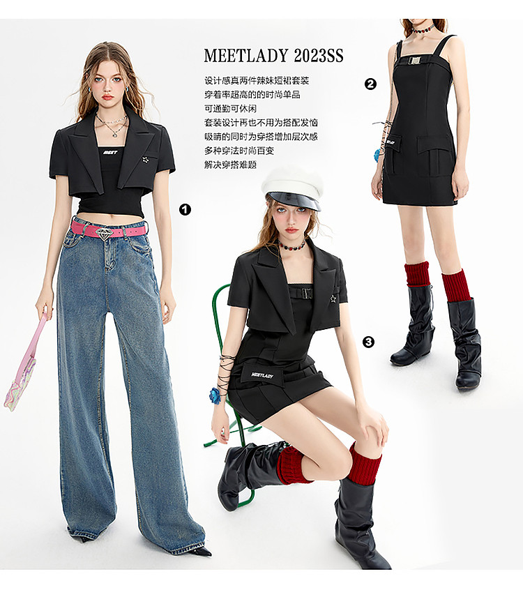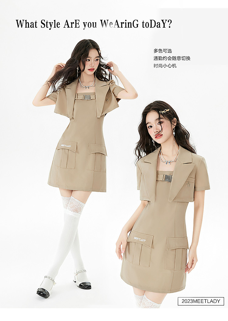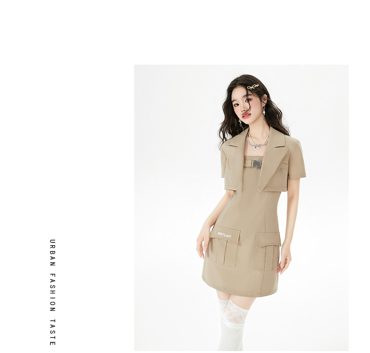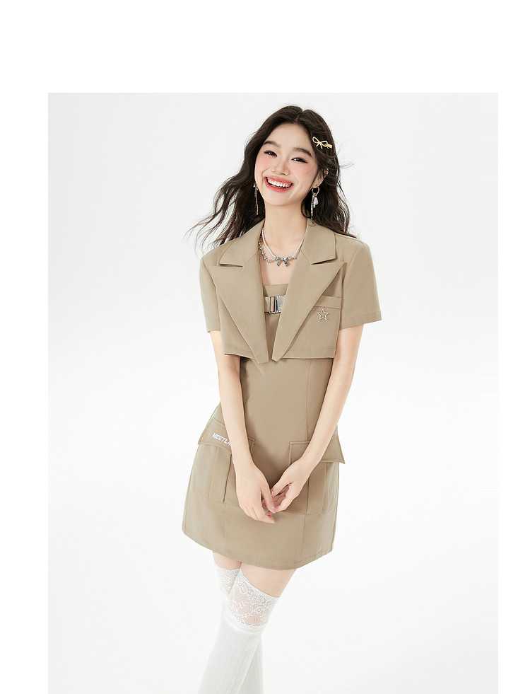 商品名称:【早秋热卖】小众设计感西装套装女短款外套+吊带连衣裙两件套 669268