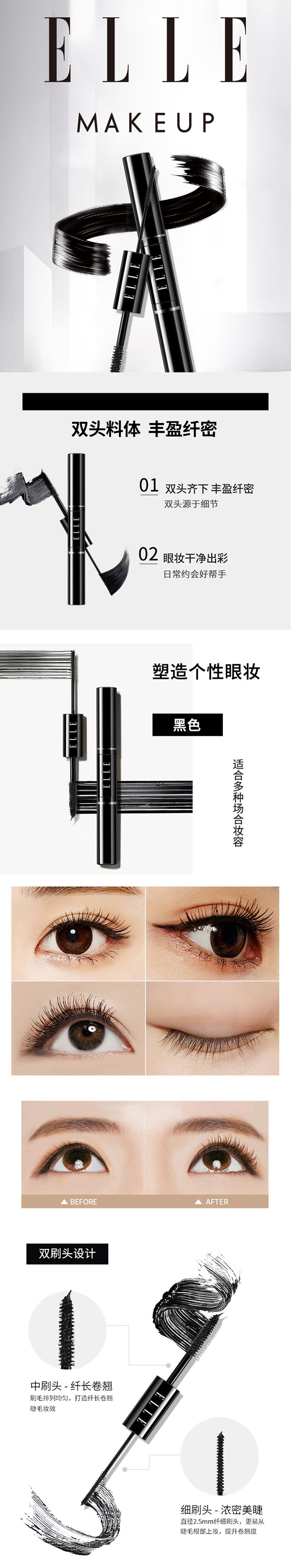 商品名称:ELLE 丰盈纤密多效睫毛膏GA02/黑色 Volumizing & Lengthening Mascara