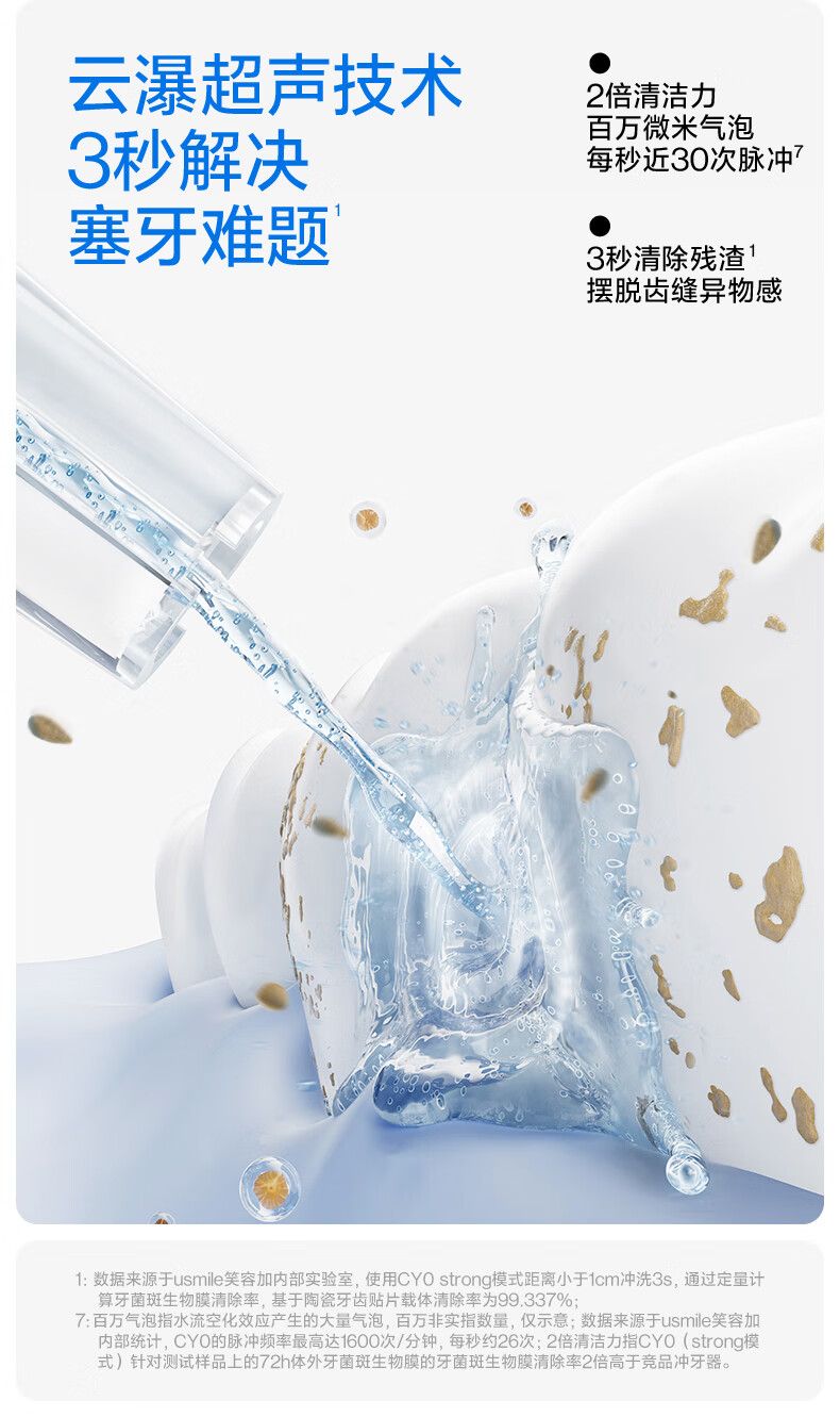 usmile笑容加冲牙器CY0超声白款 洗牙器 水牙线 洁牙器 立式冲牙器