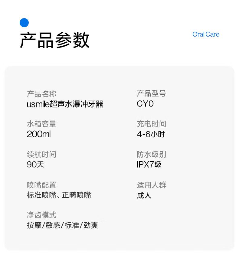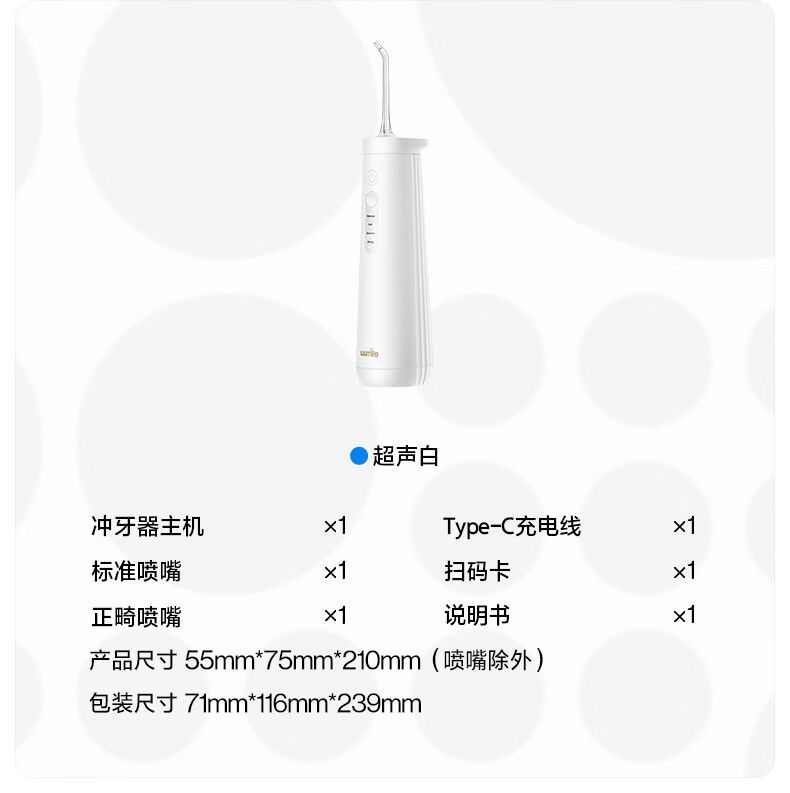 商品名称:usmile笑容加冲牙器CY0超声白款 洗牙器 水牙线 洁牙器 立式冲牙器