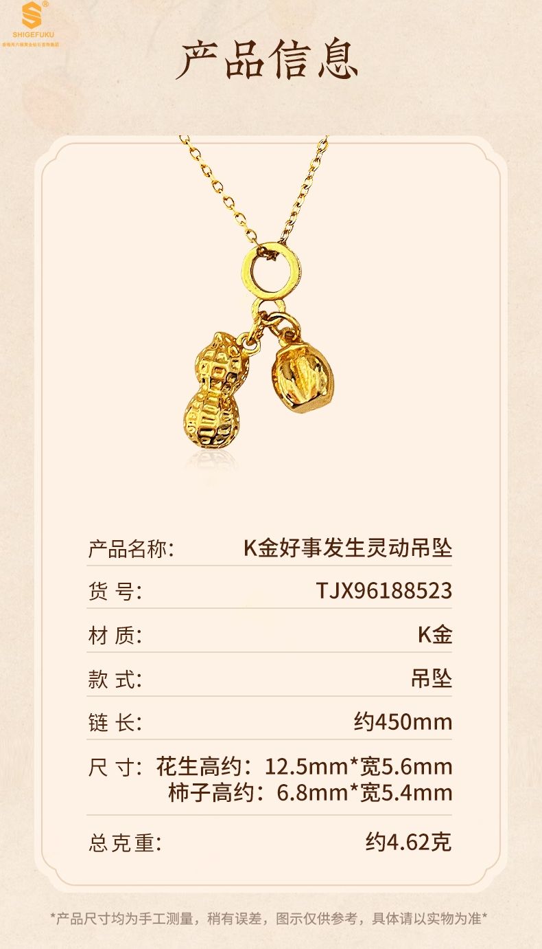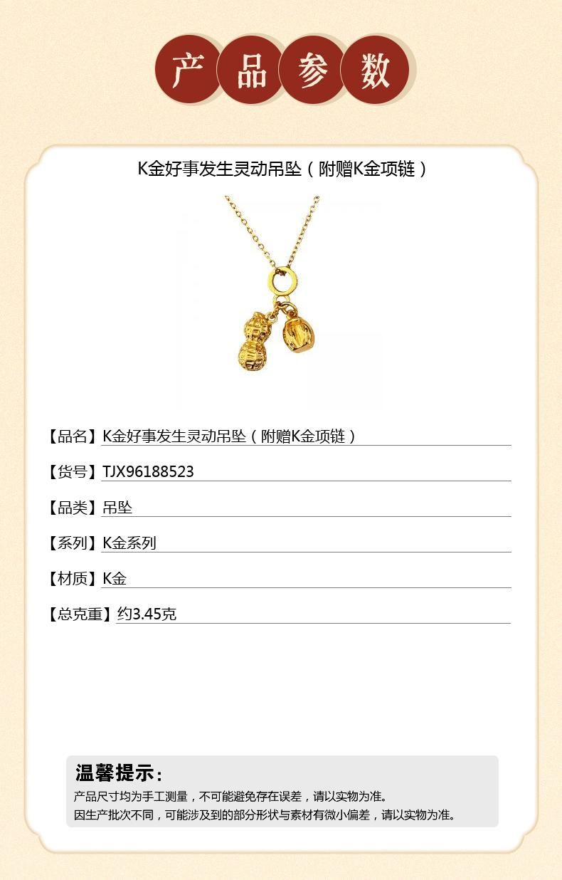 商品名称:香港周六福黄金钻石首饰K金好事发生灵动吊坠(附赠K金项链)