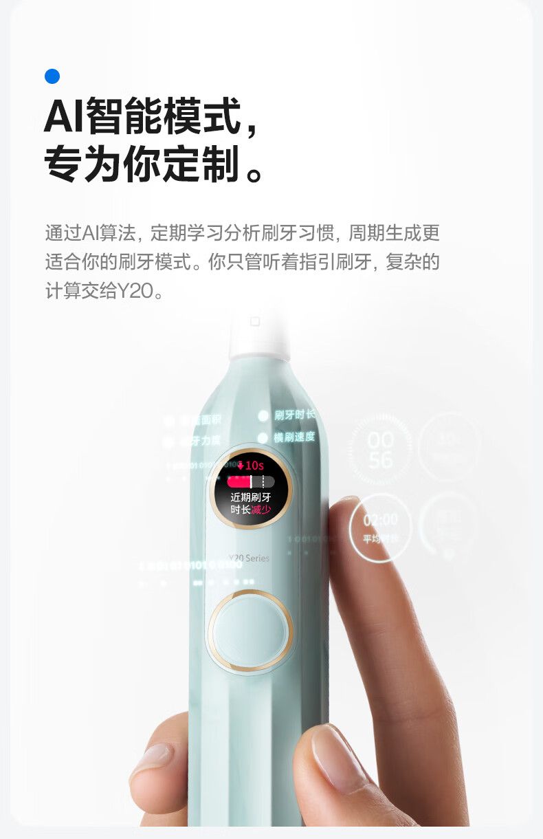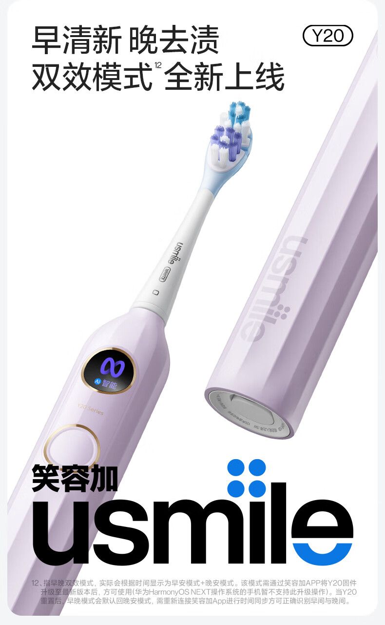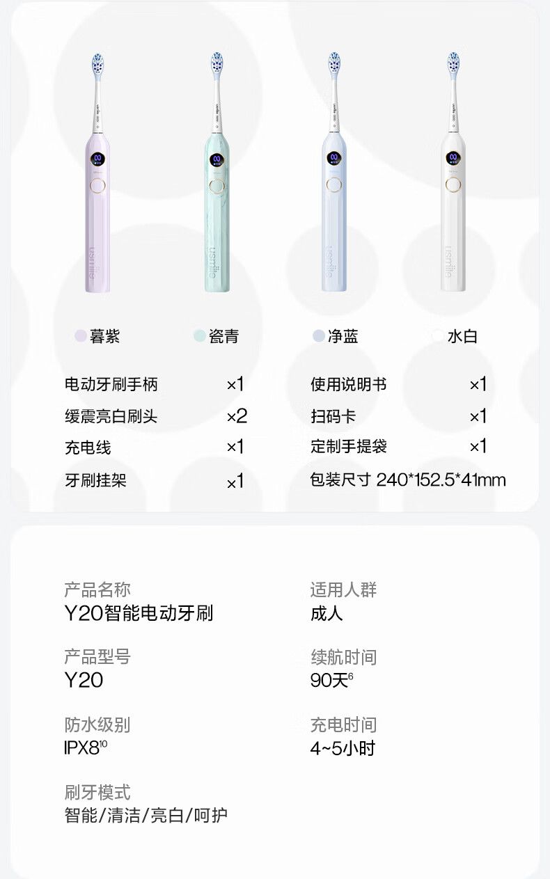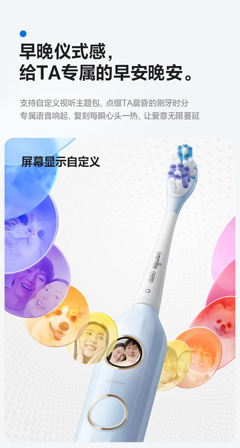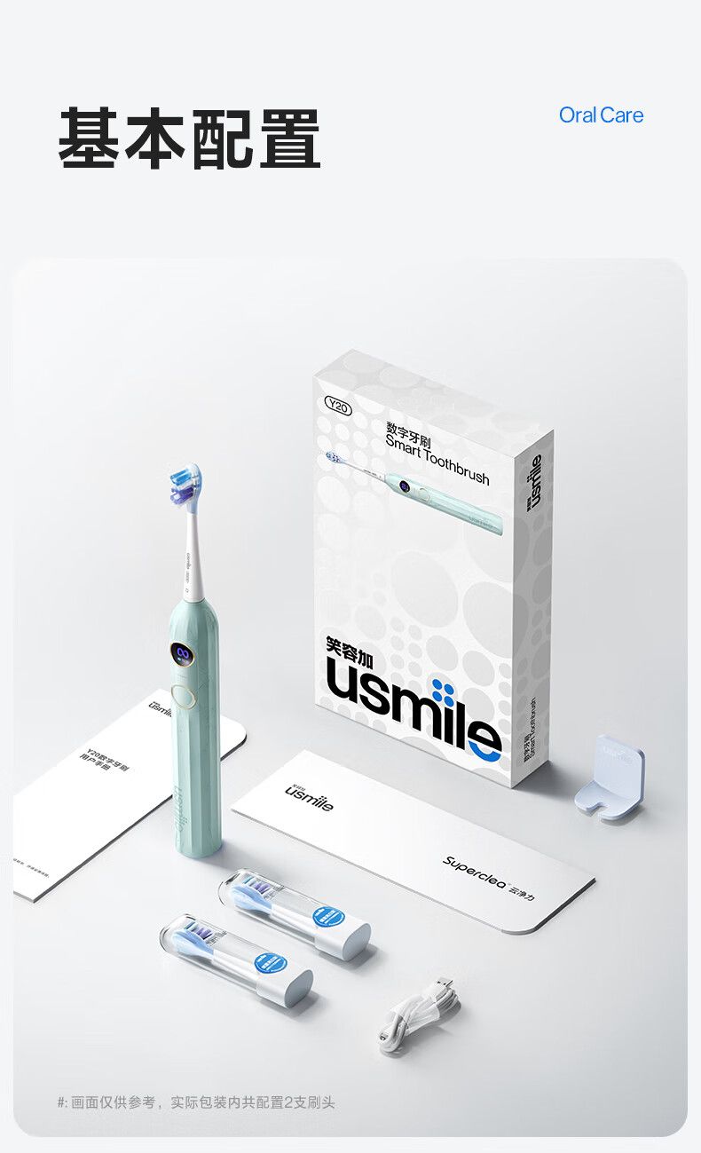 商品名称:usmile笑容加电动牙刷Y20水白-2024版 骨传导语音提醒 主动服务 蓝牙连接 APP