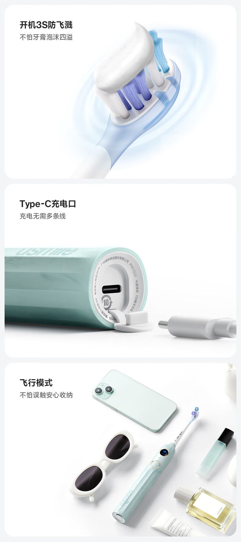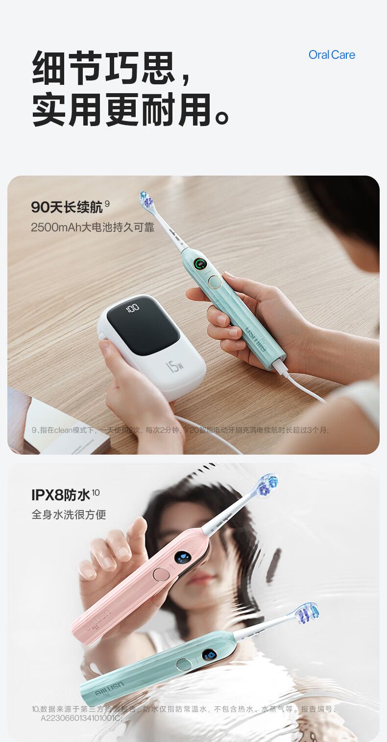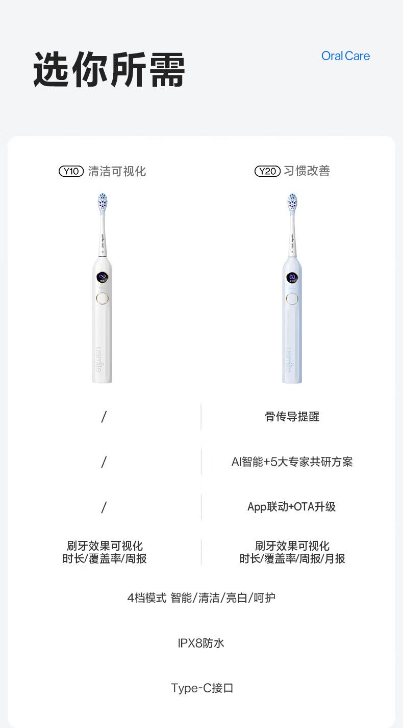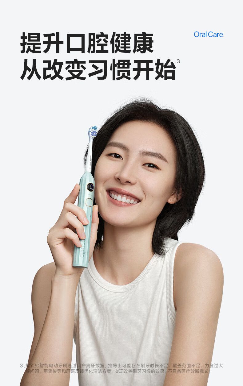商品名称:usmile笑容加电动牙刷Y20水白-2024版 骨传导语音提醒 主动服务 蓝牙连接 APP