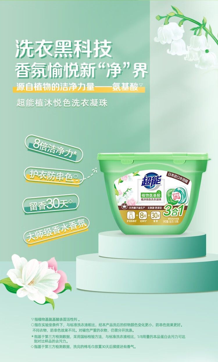 商品名称:超能/妙管家 家庭清洁洗护组合11940g+30片(超能自天然洗衣液2kg*2+超能花漾柔护洗衣液(非单卖品)1kg+超