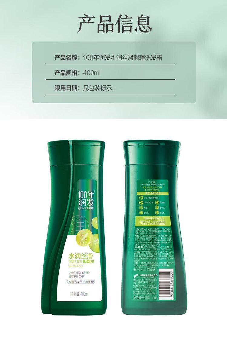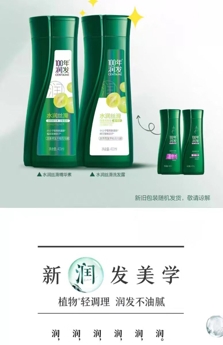 商品名称:100年润发 水润丝滑洗发露+精华素(400ml+400ml)