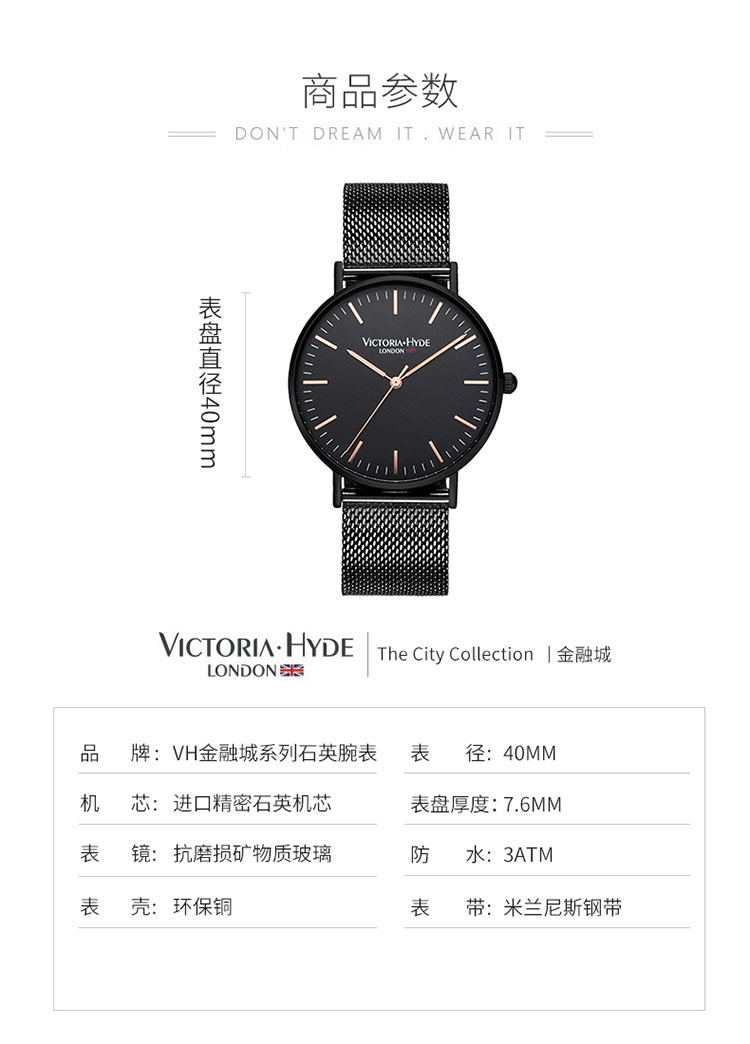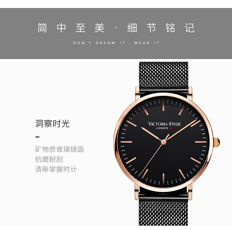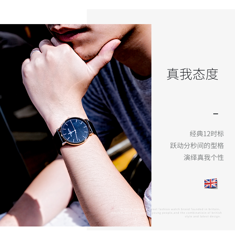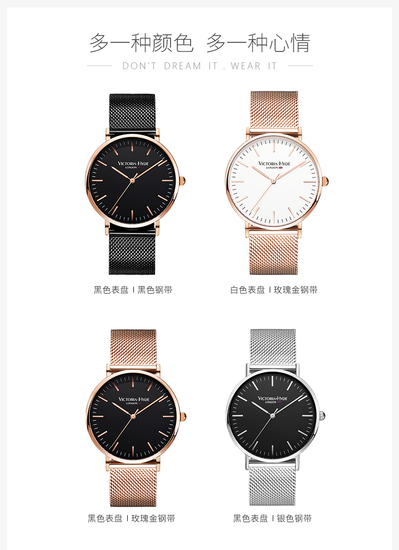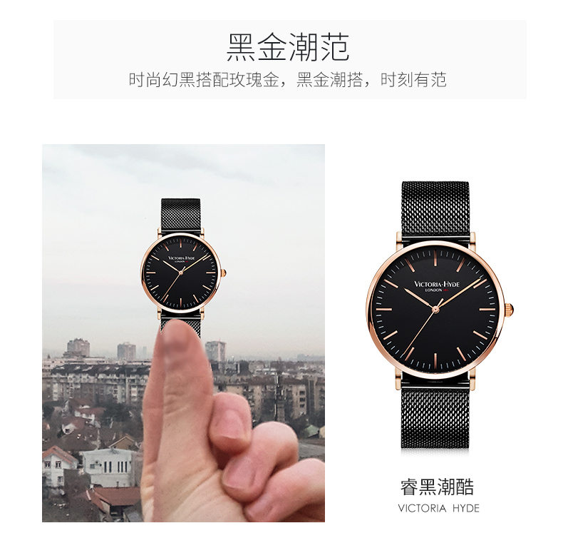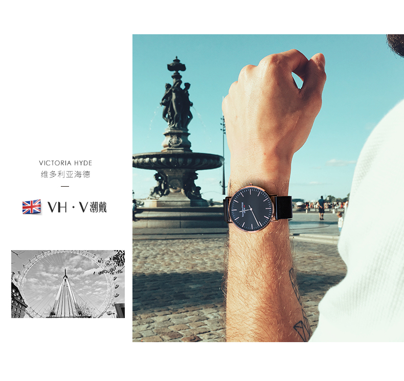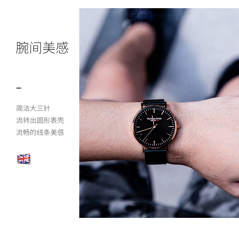商品名称:Victoria.Hyde/维多利亚海德 手表男潮 学生时尚简约钢带款男士防水手表 黄宥明同款