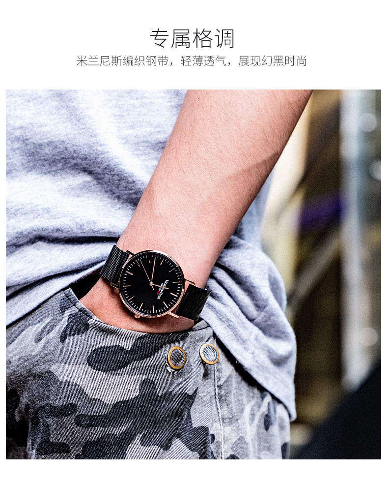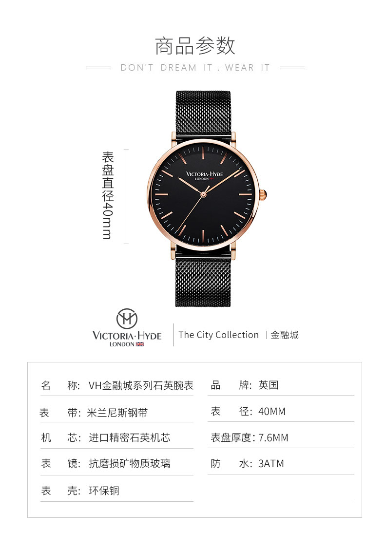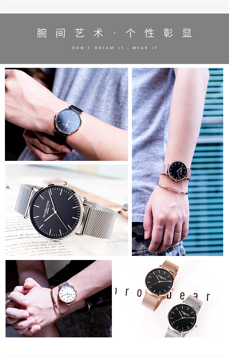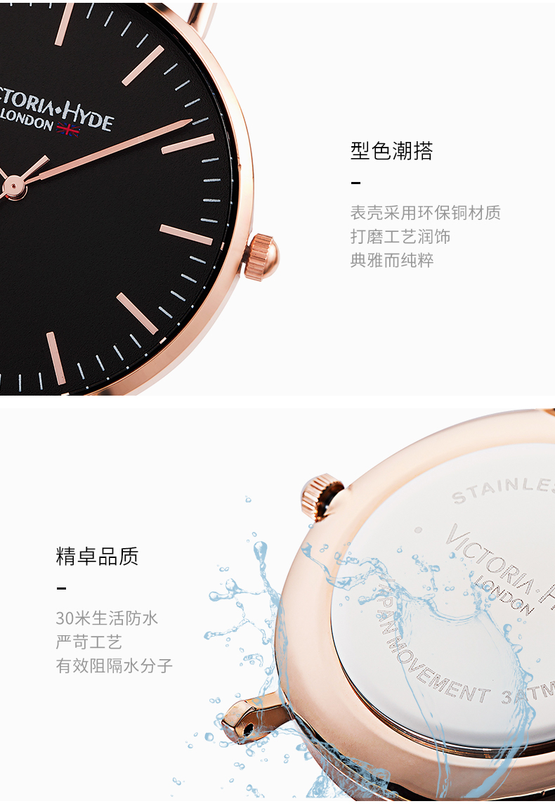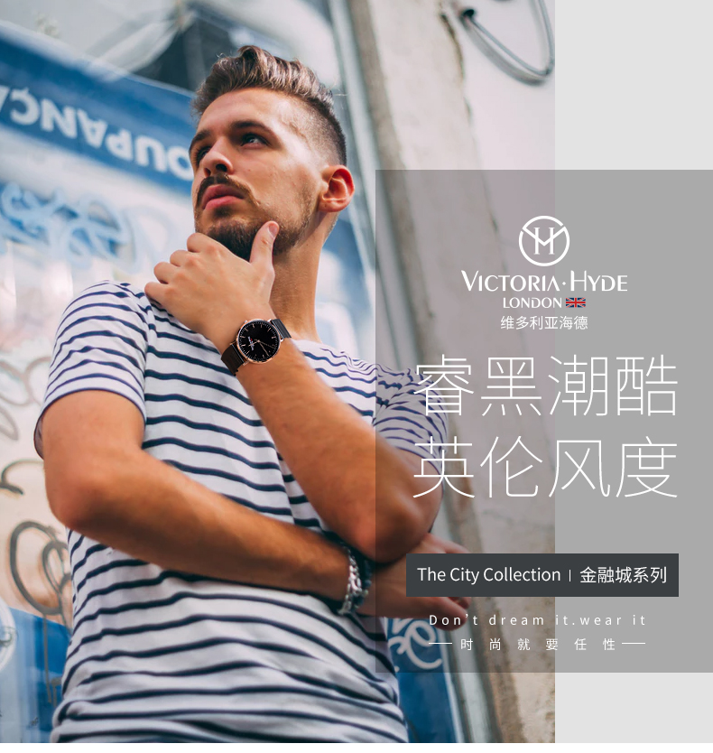 商品名称:Victoria.Hyde/维多利亚海德 手表男潮 学生时尚简约钢带款男士防水手表 黄宥明同款