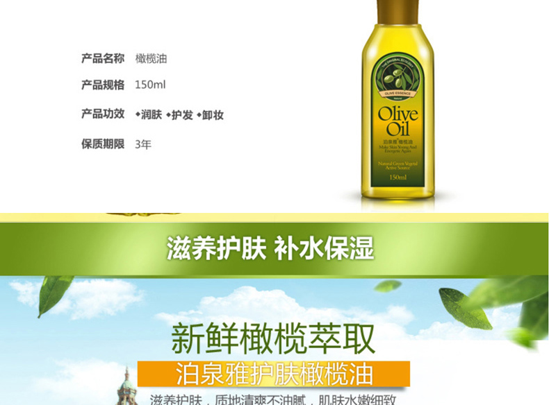 商品名称:泊泉雅橄榄油 滋润保湿润肤护发卸妆 150ml