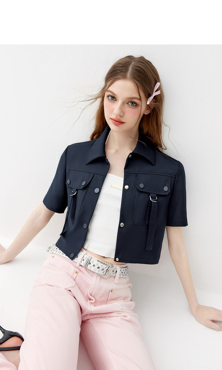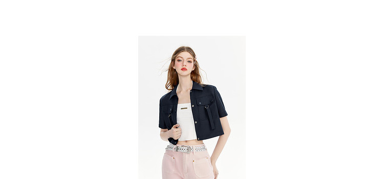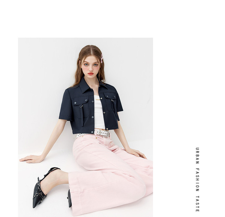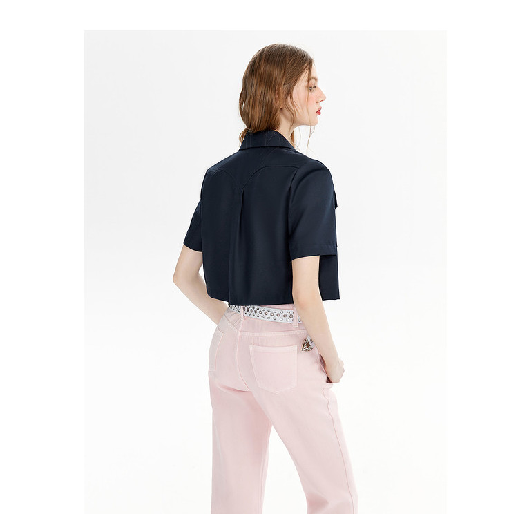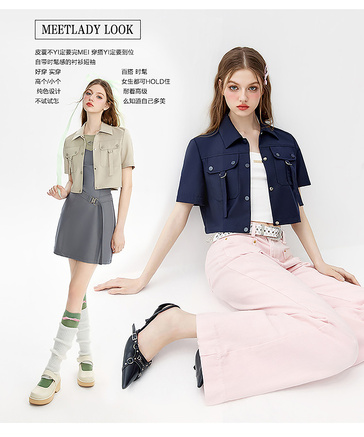 商品名称:夏装休闲辣妹短袖衬衫女流行衬衣短款露脐上衣 797140