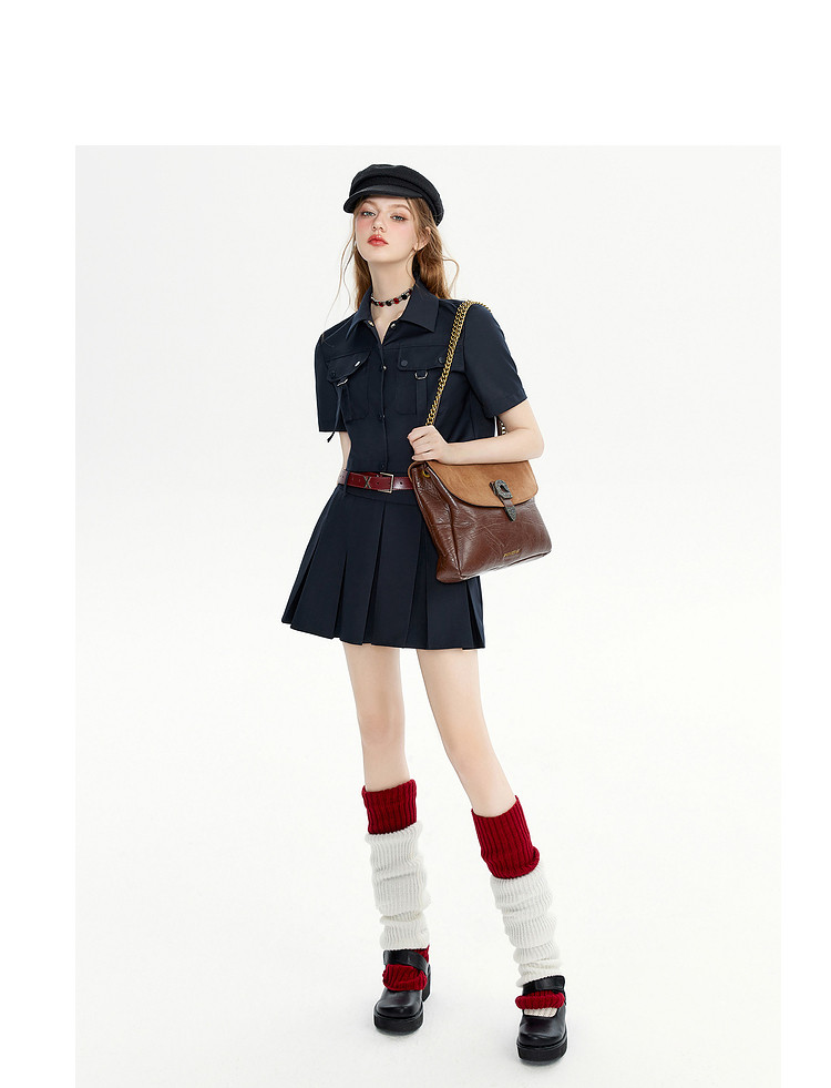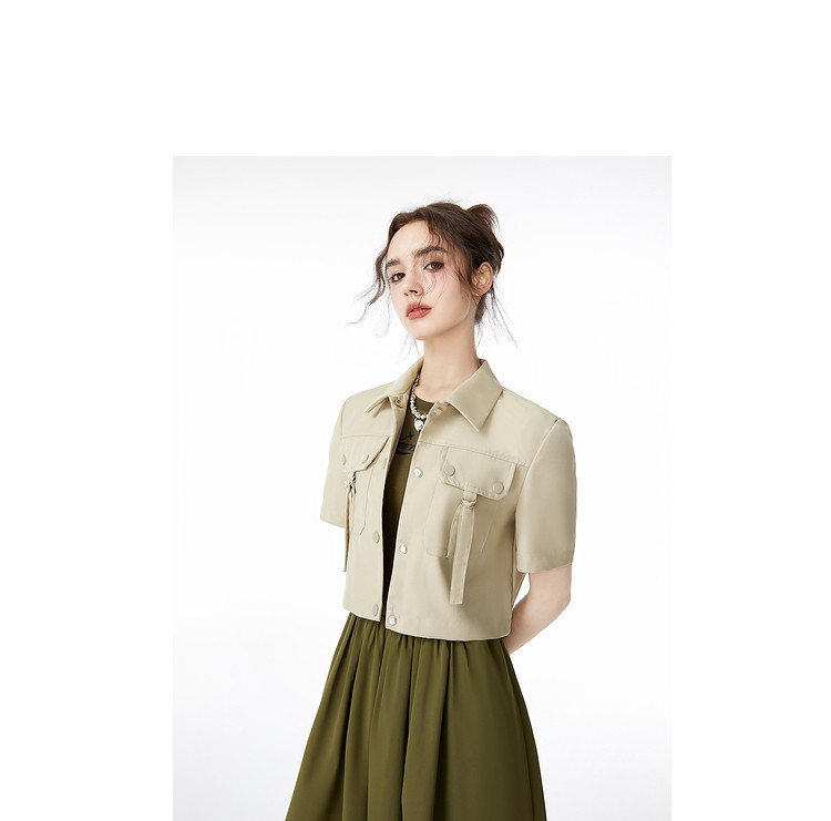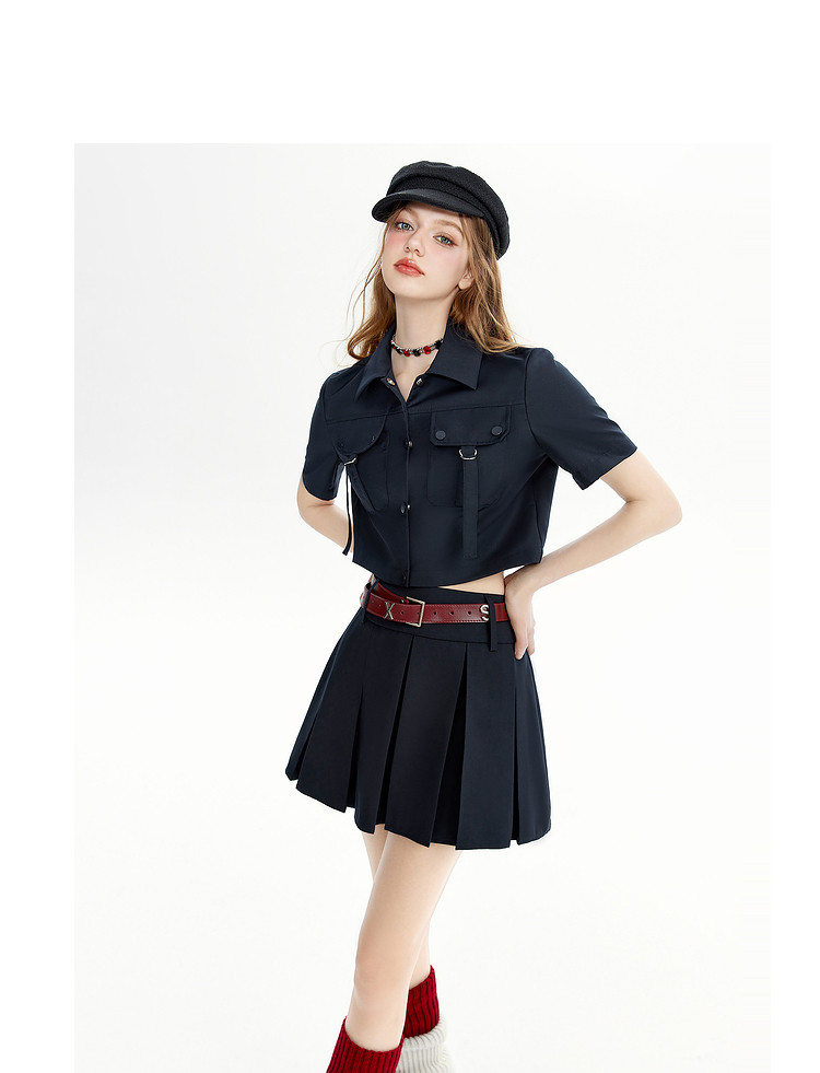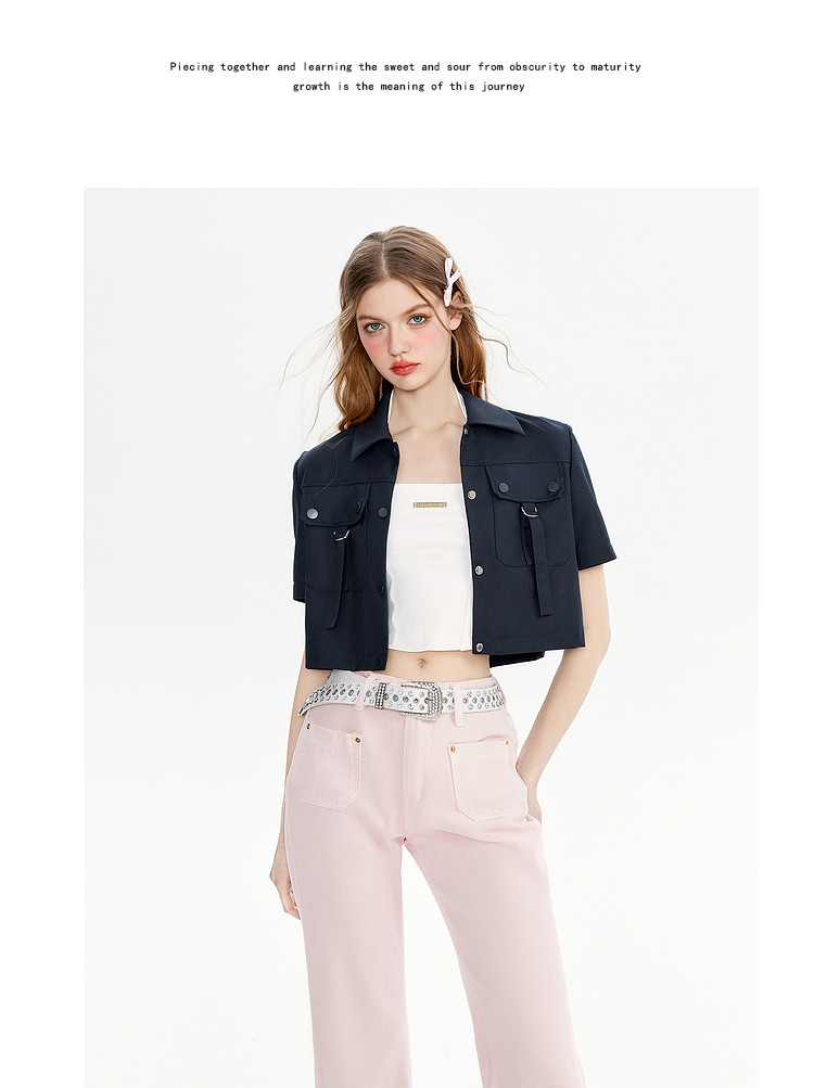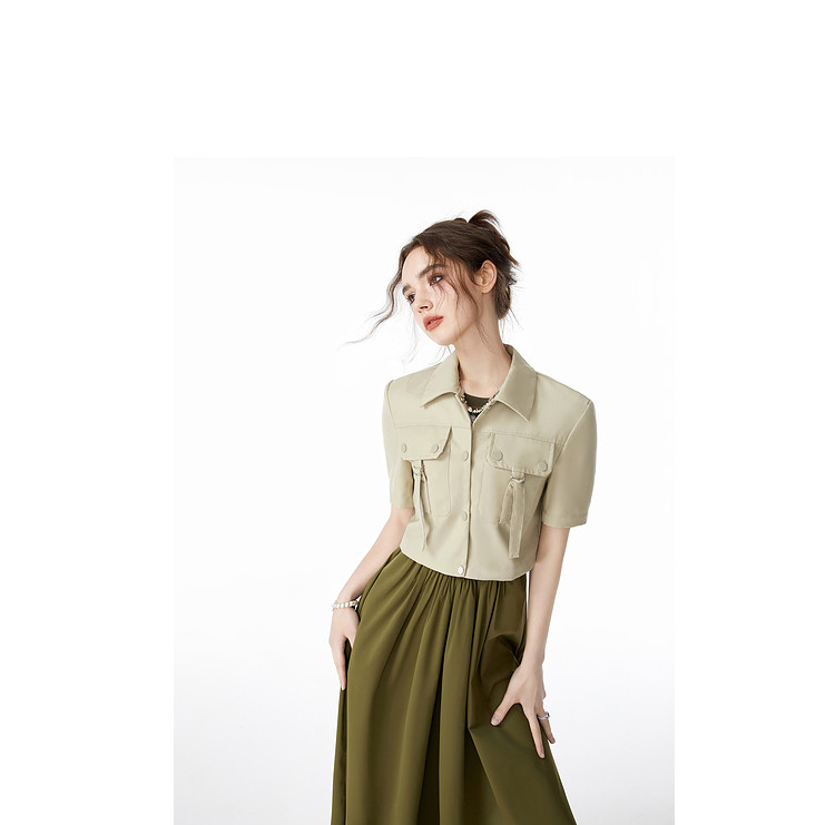 商品名称:夏装休闲辣妹短袖衬衫女流行衬衣短款露脐上衣 797140