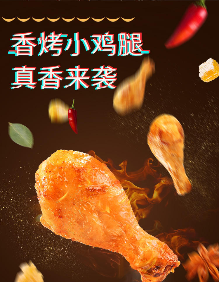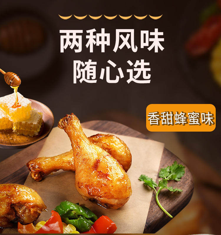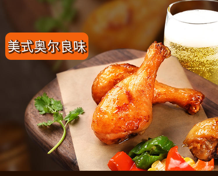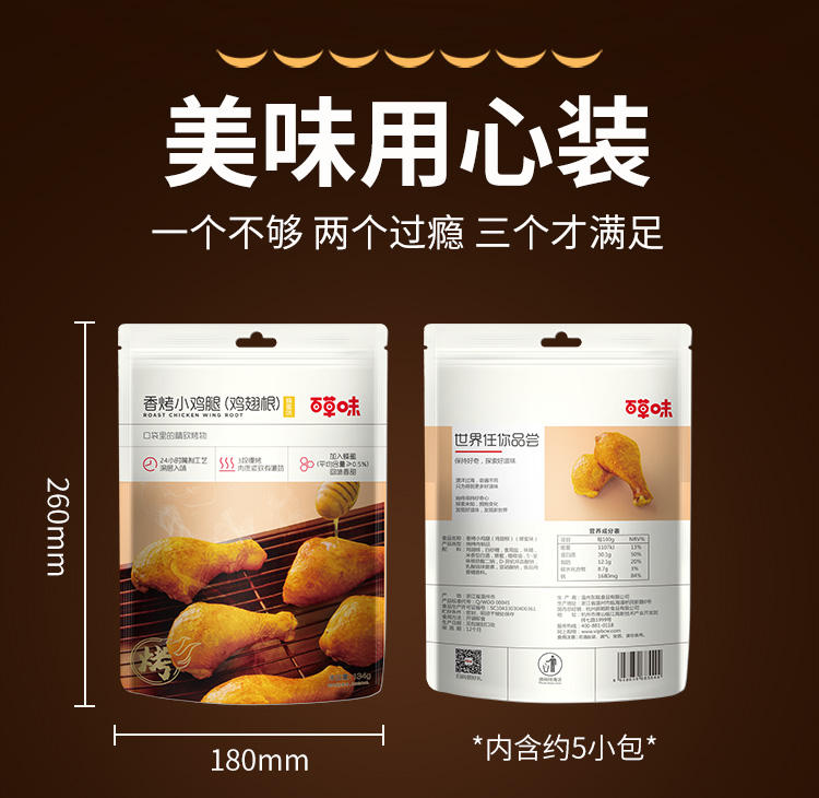 商品名称:百草味香烤小鸡腿鸡翅根134g*2袋 美式奥尔良味