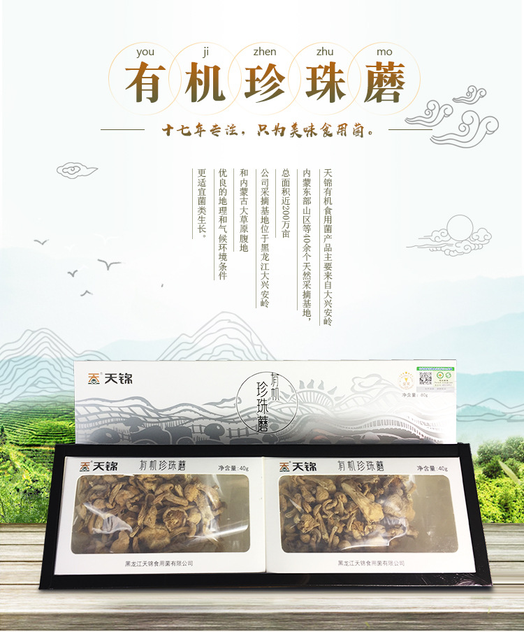 商品名称:天锦山水系列有机珍珠蘑礼盒80g