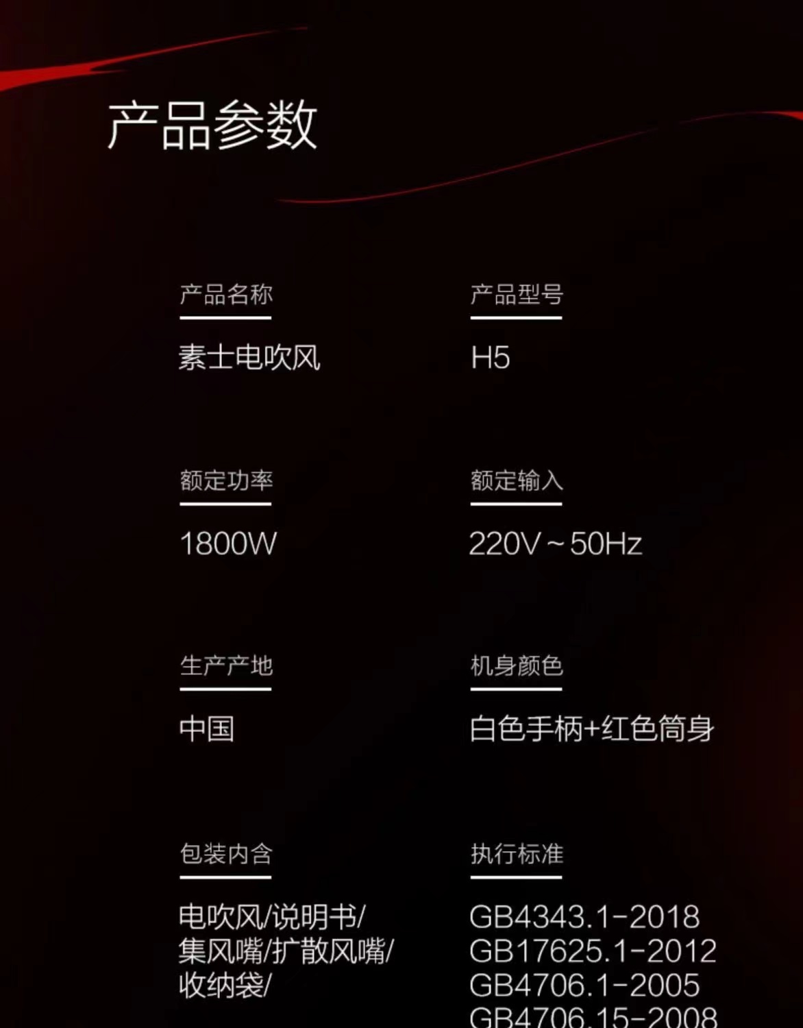 商品名称:soocas/素士负离子电吹风H5 女神红