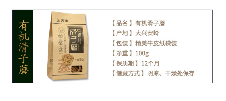 商品名称:天锦有机滑子蘑纸袋装100g*2袋