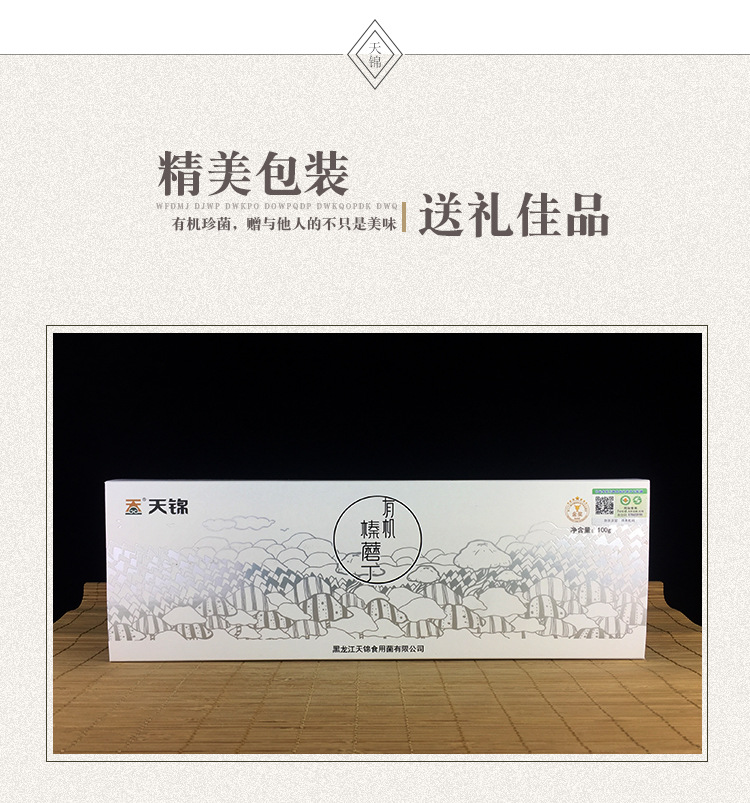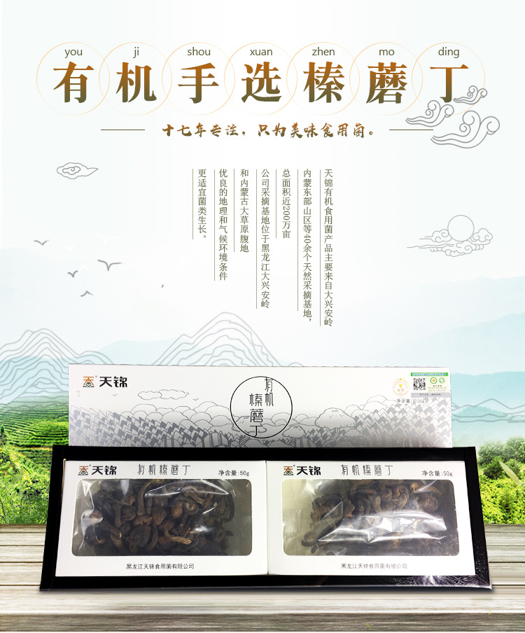 商品名称:天锦山水系列有机榛蘑丁礼盒100g
