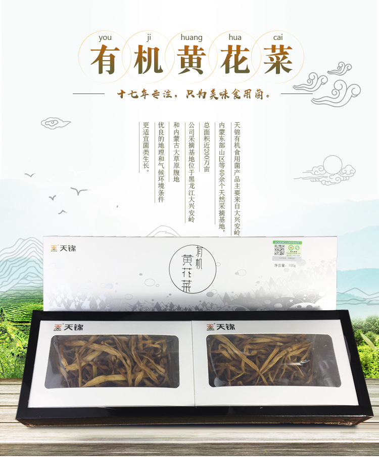 商品名称:天锦山水系列有机黄花菜礼盒100g*2盒
