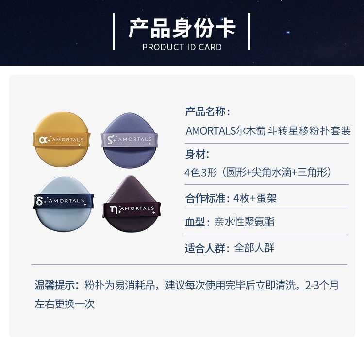 商品名称:AMORTALS/尔木萄斗转星移粉扑套装+化妆工具专用清洗剂150ml