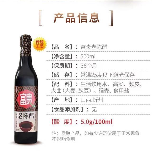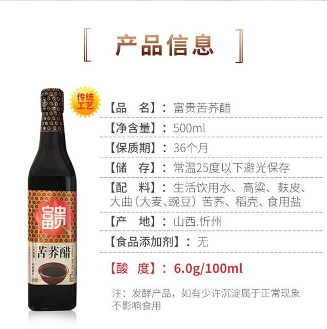 规格:精品苦荞醋500ml 6度精品老陈醋500ml