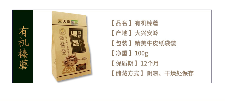产品规格:天锦有机榛蘑纸袋装100g*2袋