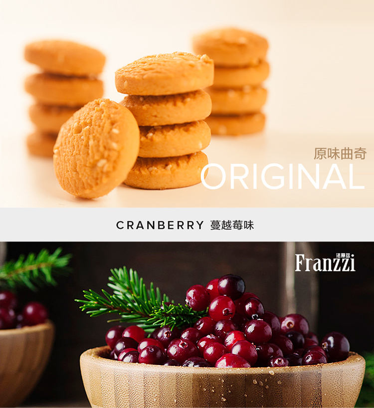 Franzzi/法丽兹曲奇饼干蔓越莓味102g*2盒+抹茶味102g*2盒+原味102g*2盒