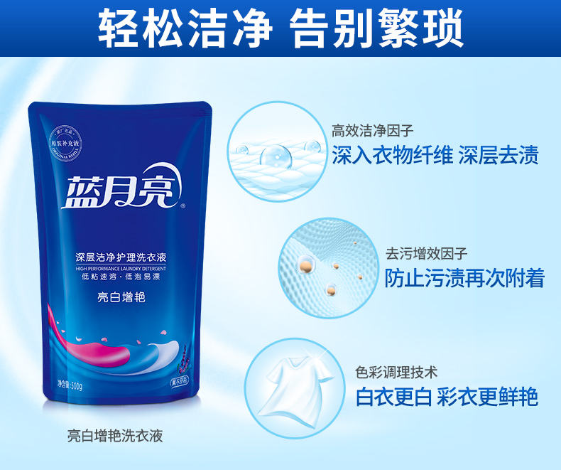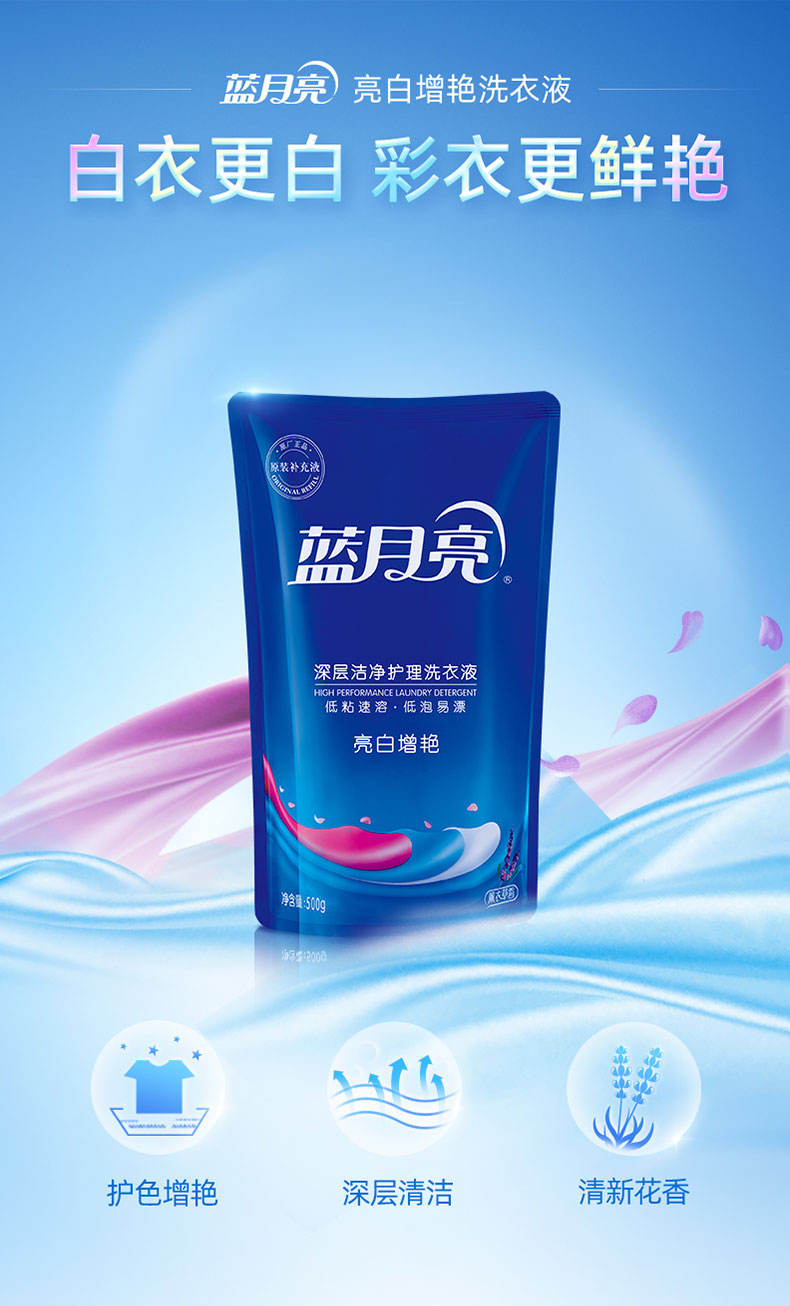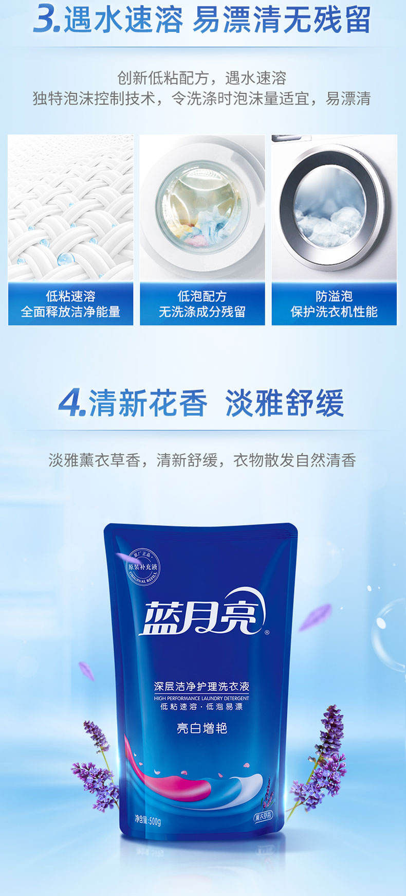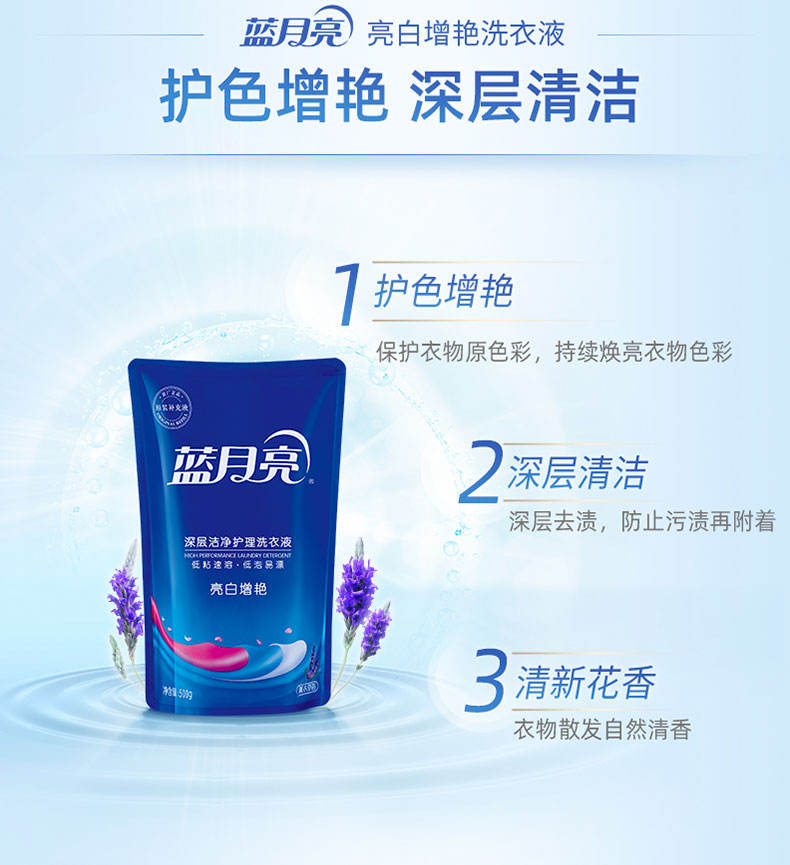 商品名称:蓝月亮增艳亮白深层洁净护理洗衣液-薰衣草香500g*12袋10001429
