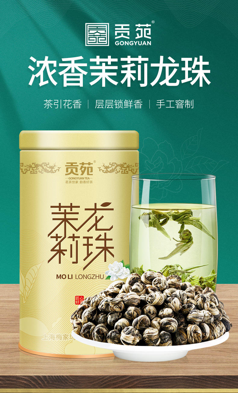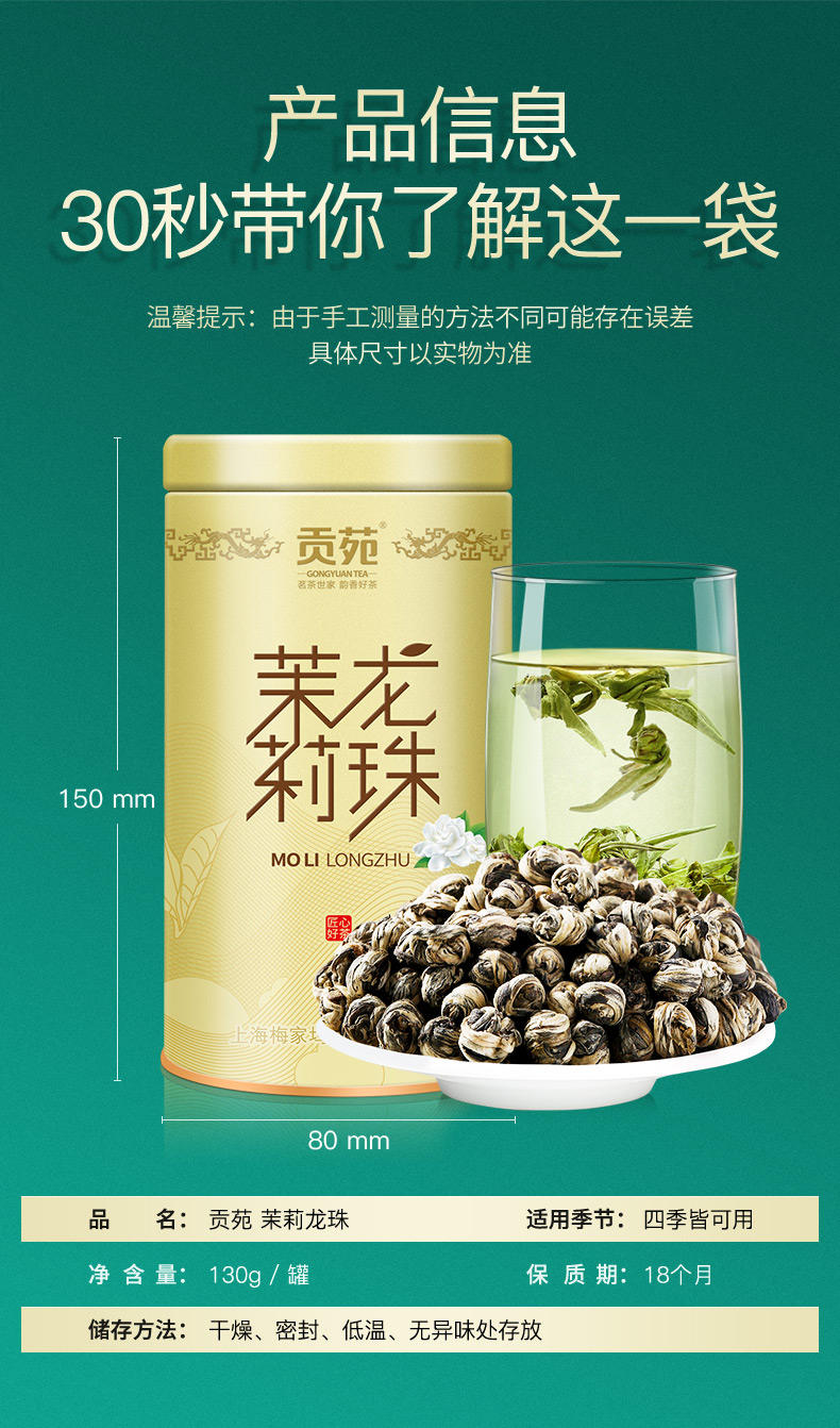 商品名称:贡苑浓香茉莉龙珠茶130g