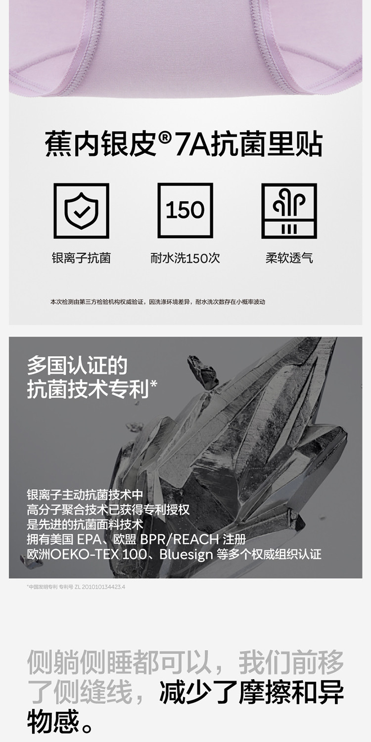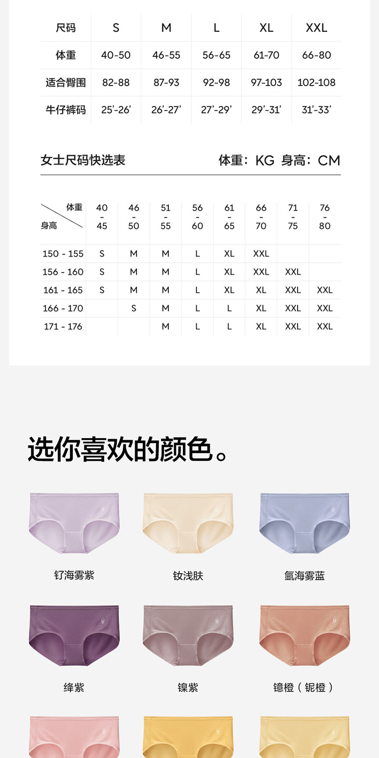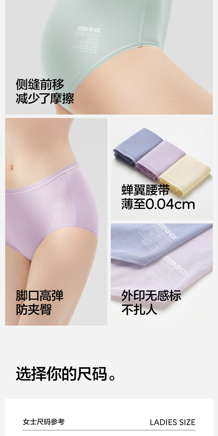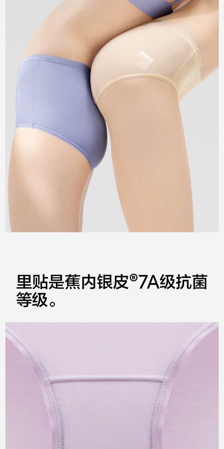 商品名称:银皮500E女士内裤7A抗菌透气无痕莫代中腰三角内裤3件装 290309