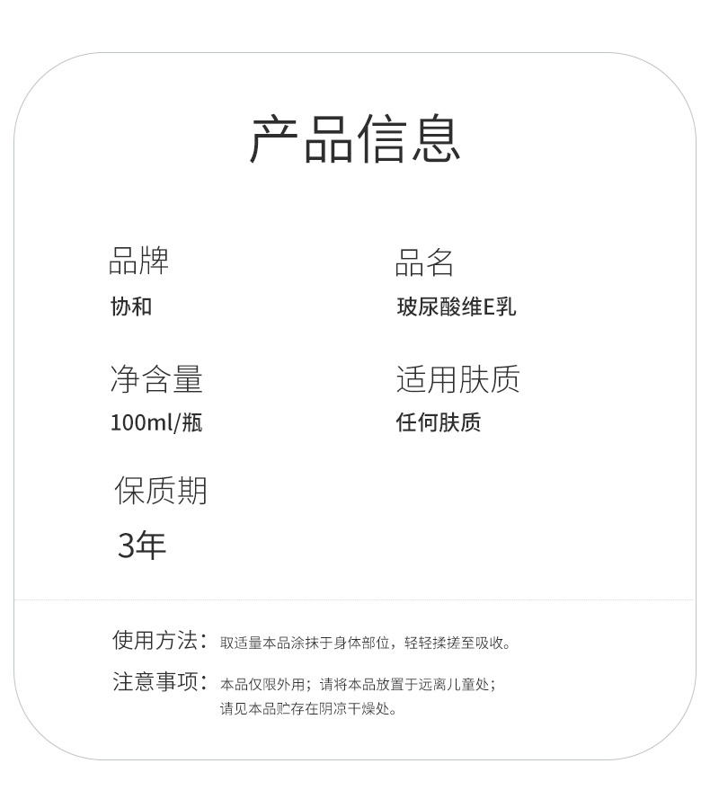商品名称:协和玻尿酸维E乳100ml*3瓶XR-84