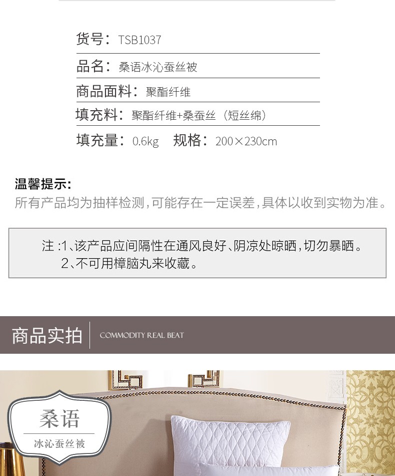 商品名称:恒源祥桑语冰沁蚕丝被200*230cm 600g