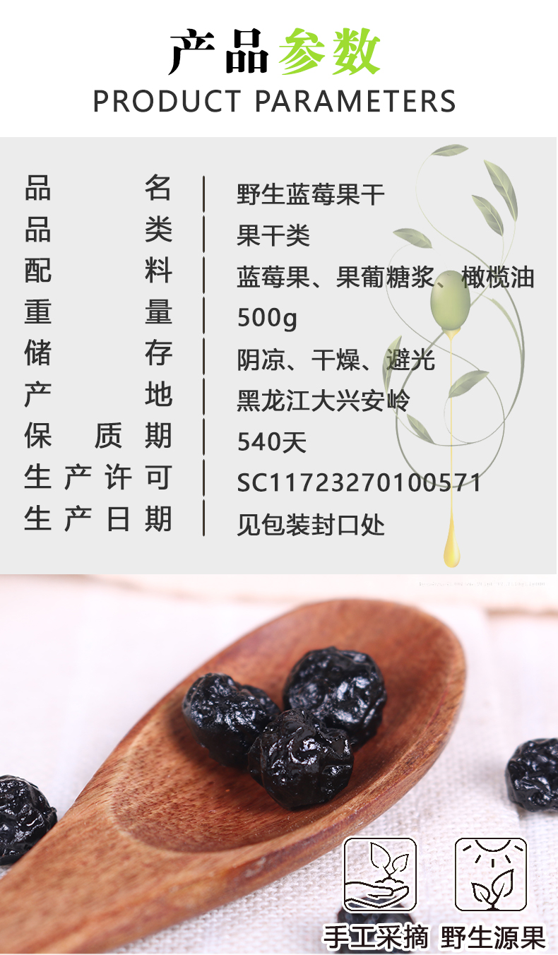 商品名称:bluebeauty/蓝百蓓野生蓝莓果干500g