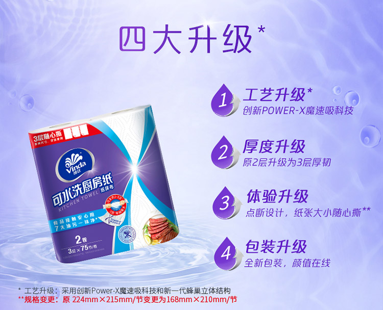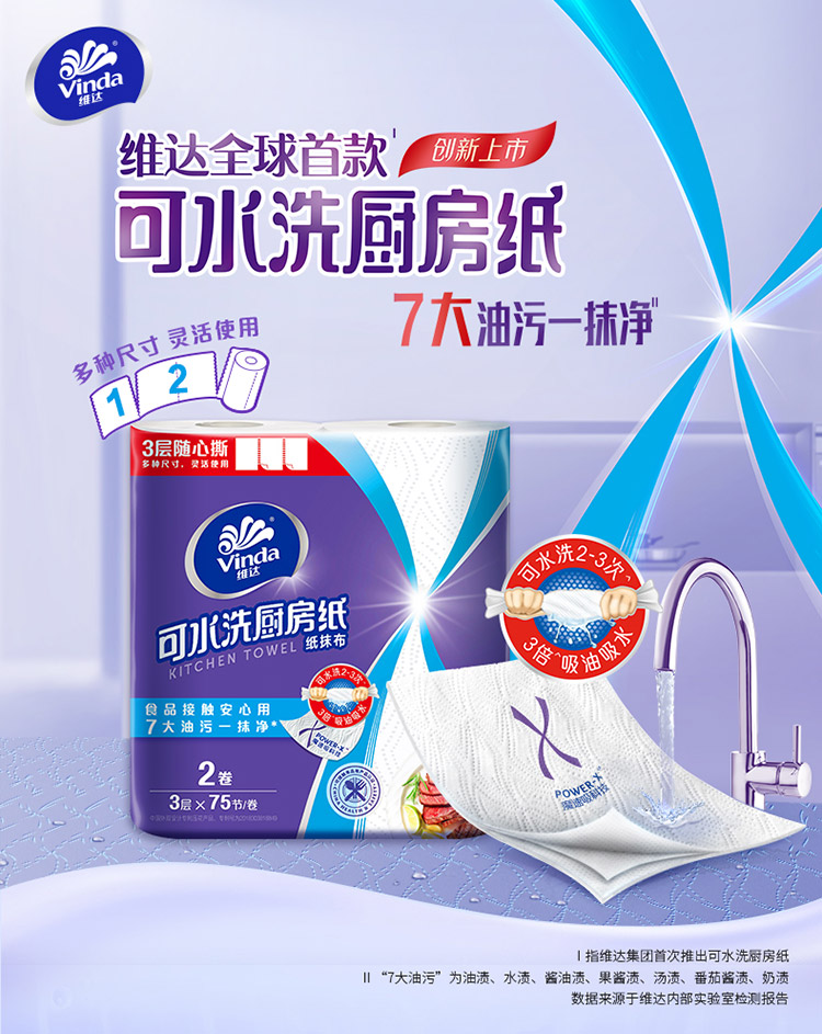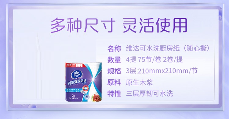 商品名称:Vinda/维达可水洗厨房纸75节*12卷