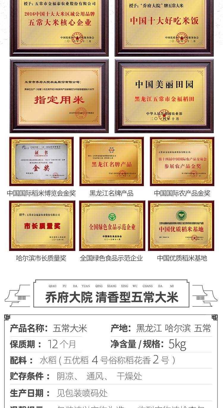 商品名称:乔府大院五常稻花香清香型大米5kg
